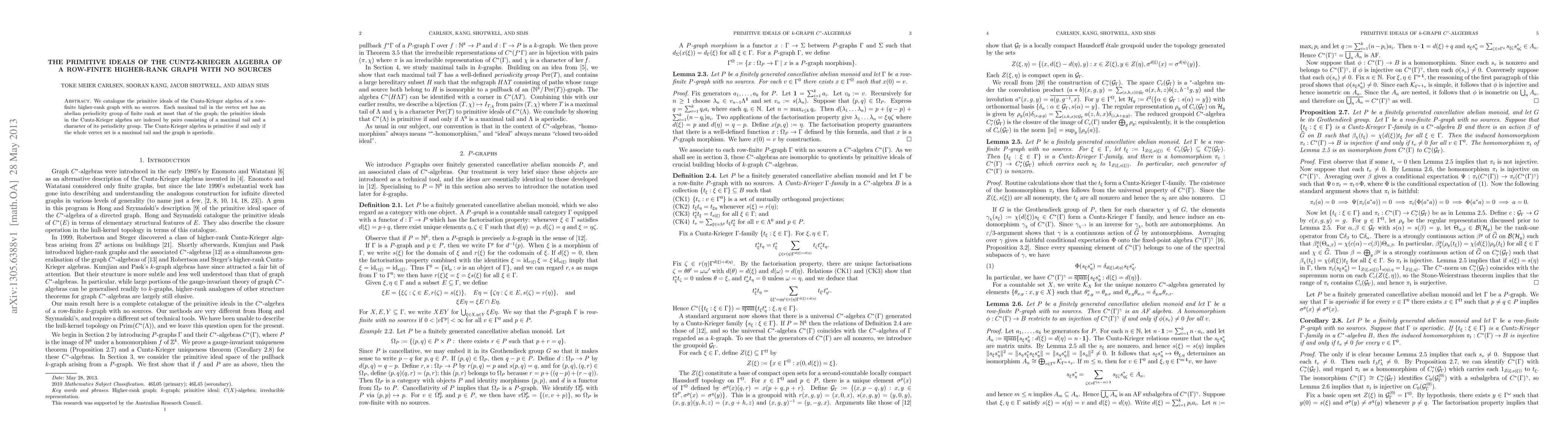 This paper catalogs the primitive ideals of the Cuntz-Krieger algebra for row-finite higher-rank graphs without sources, showing that these are indexed by pairs of maximal tails and their periodicity group characters. The algebra is primitive if the entire vertex set forms a maximal tail and the graph is aperiodic.