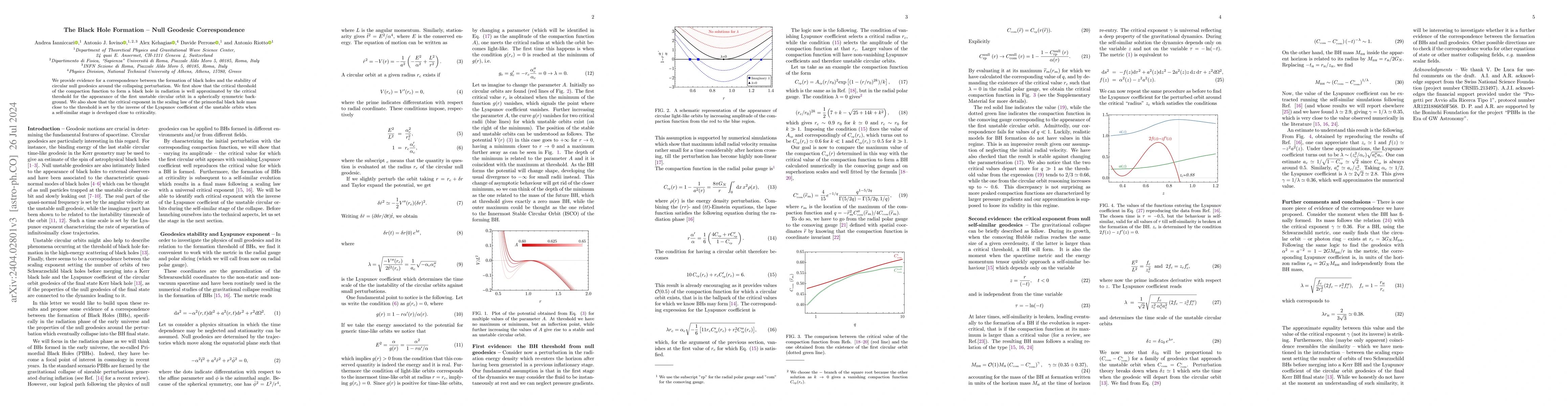 This research demonstrates a link between primordial black hole formation and the stability of circular null geodesics, showing that the threshold for black hole creation correlates with the appearance of the first unstable orbit, and that the mass scaling near this threshold is governed by the Lyapunov coefficient of these orbits.