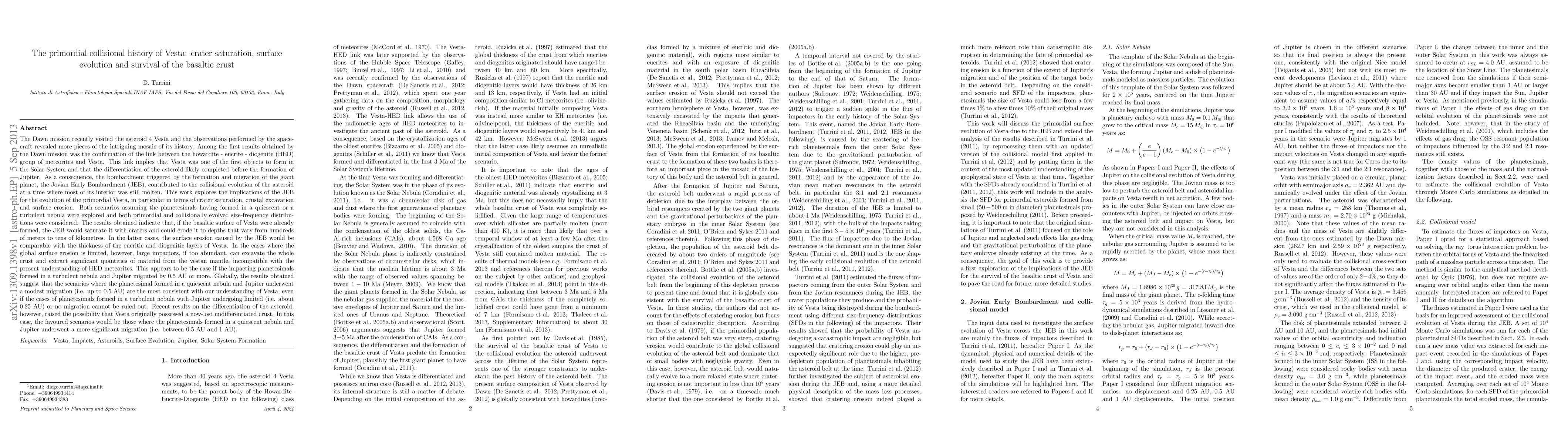 This work explores the implications of the Jovian Early Bombardment (JEB) for the evolution of the primordial Vesta, in particular in terms of crater saturation, crustal excavation and surface erosion. Both scenarios assuming the planetesimals having formed in a quiescent or a turbulent nebula were explored and both primordial and collisionally evolved size-frequency distributions were considered. The results obtained indicate that, if the basaltic surface of Vesta were already formed, the JEB would saturate it with craters and could erode it to depths that vary from hundreds of meters to tens of kilometres. In the latter cases, the surface erosion caused by the JEB would be comparable with the thickness of the eucritic and diogenitic layers of Vesta. In the cases where the global surface erosion is limited, however, large impactors, if too abundant, can excavate the whole crust and extract significant quantities of material from the vestan mantle, incompatible with the present understanding of HED meteorites. This appears to be the case if the impacting planetesimals formed in a turbulent nebula and Jupiter migrated by 0.5 AU or more. Globally, the results obtained suggest that the scenarios where the planetesimal formed in a quiescent nebula and Jupiter underwent a modest migration (i.e. up to 0.5 AU) are the most consistent with our understanding of Vesta, even if the cases of planetesimals formed in a turbulent nebula with Jupiter undergoing limited (i.e. about 0.25 AU) or no migration cannot be ruled out. Recent results on the differentiation of the asteroid, however, raised the possibility that Vesta originally possessed a now-lost undifferentiated crust. In this case, the favoured scenarios would be those where the planetesimals formed in a quiescent nebula and Jupiter underwent a more significant migration (i.e. between 0.5 AU and 1 AU).
