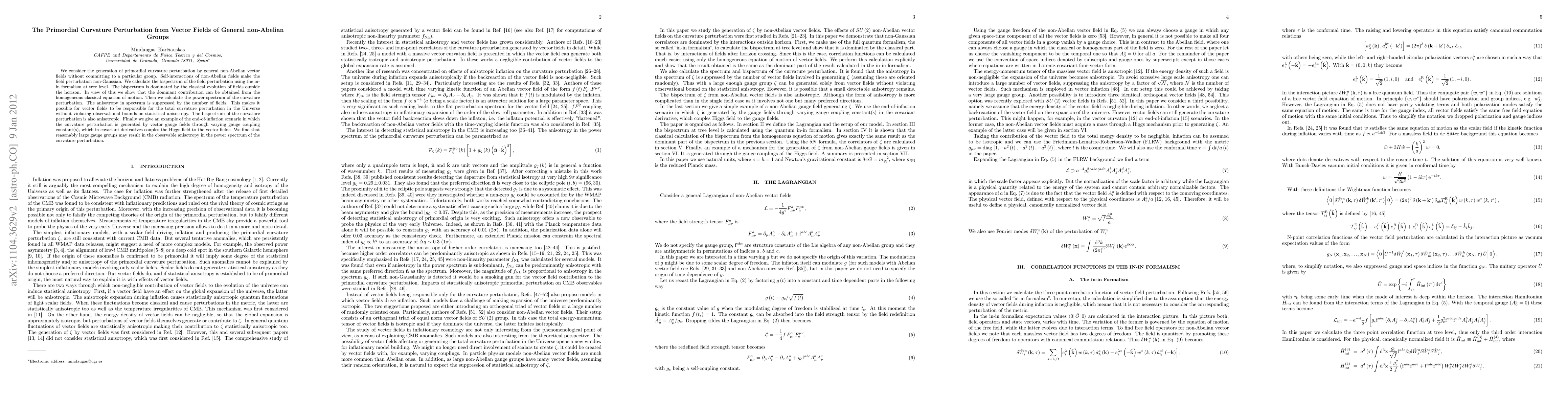This paper explores the generation of primordial curvature perturbation by general non-Abelian vector fields, showing that their self-interactions make the field perturbation non-Gaussian. It calculates the bispectrum and power spectrum of the curvature perturbation, finding that large gauge groups can result in observable anisotropies without violating observational bounds.