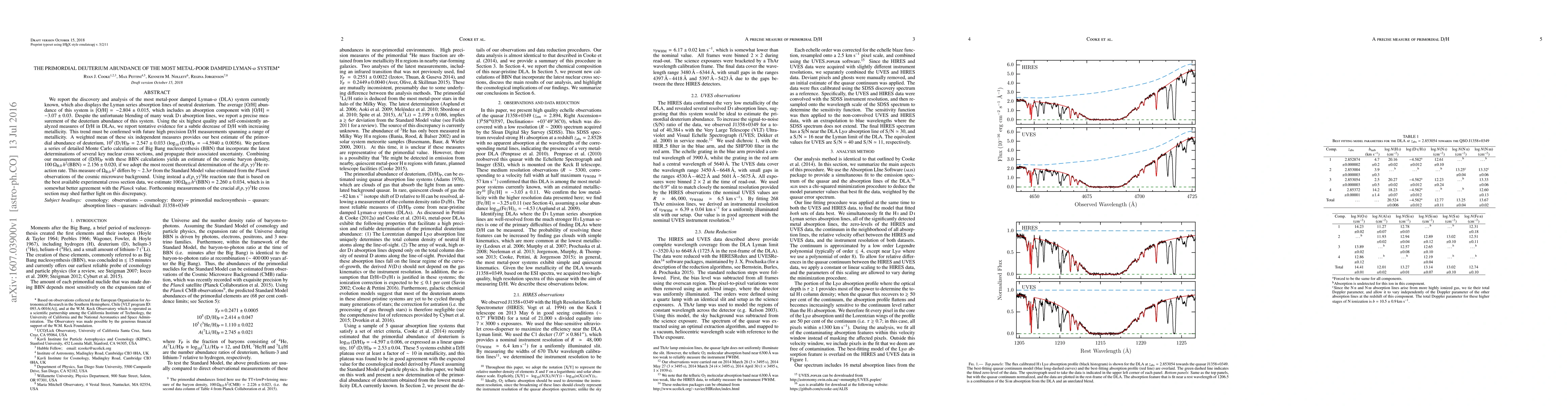 This paper reports the precise measurement of deuterium abundance in the most metal-poor damped Lyman-alpha system, providing evidence for a potential decrease in D/H with increasing metallicity. The primordial deuterium abundance estimate is 10^5 (D/H)_P = 2.547 +/- 0.033, leading to a baryon density estimate that differs from the Planck-derived Standard Model value.