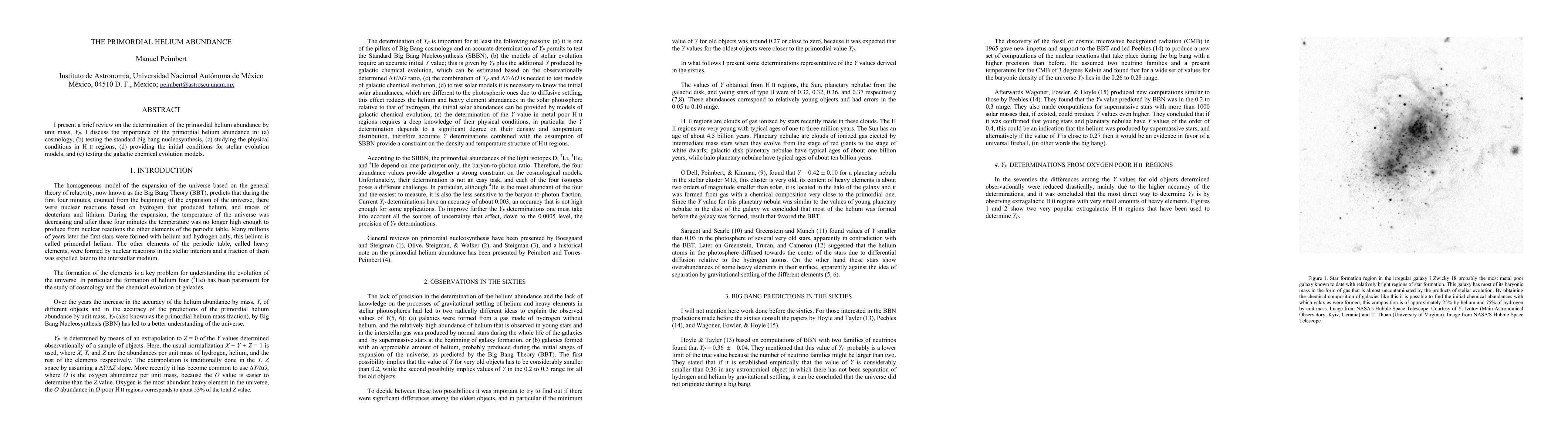This paper reviews the determination of primordial helium abundance, Yp, emphasizing its significance in cosmology, big bang nucleosynthesis, H II region studies, stellar evolution models, and galactic chemical evolution. Accurate Yp measurements are crucial for understanding the universe's early conditions and development.