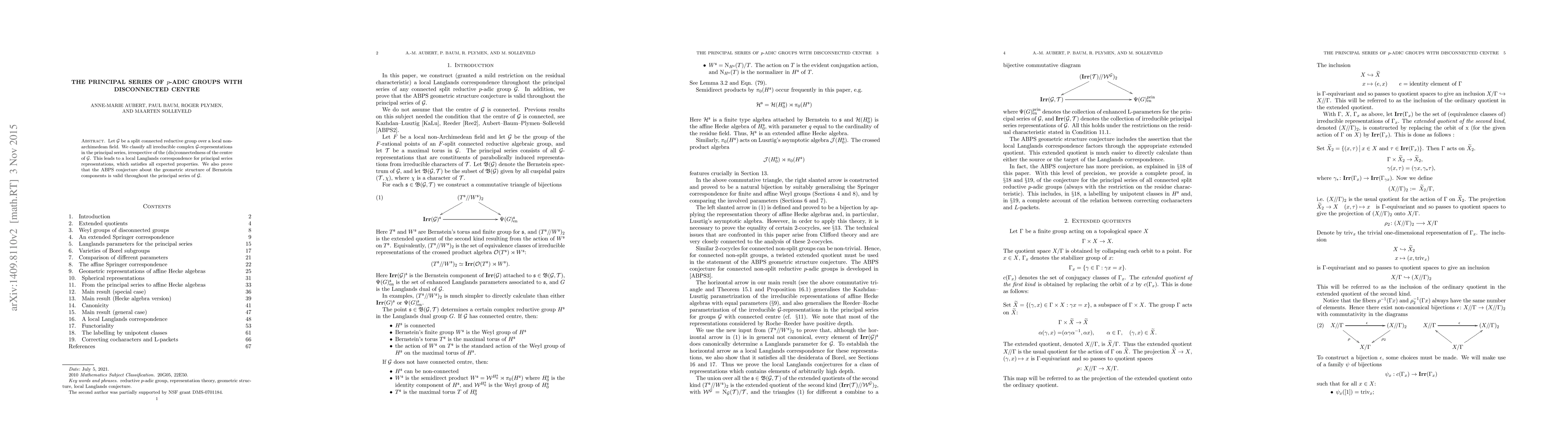 Let G be a split connected reductive group over a local non-archimedean field. We classify all irreducible complex G-representations in the principal series, irrespective of the (dis)connectedness of the centre of G. This leads to a local Langlands correspondence for principal series representations, which satisfies all expected properties. We also prove that the ABPS conjecture about the geometric structure of Bernstein components is valid throughout the principal series of G.