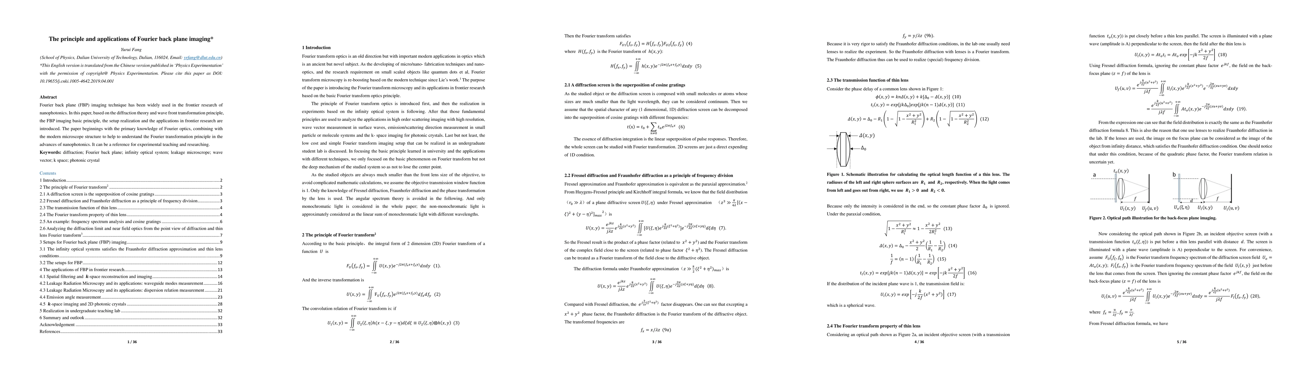 This paper introduces the principle and applications of Fourier back plane imaging, a technique used in nanophotonics research, explaining its basics through diffraction theory and wave front transformation.