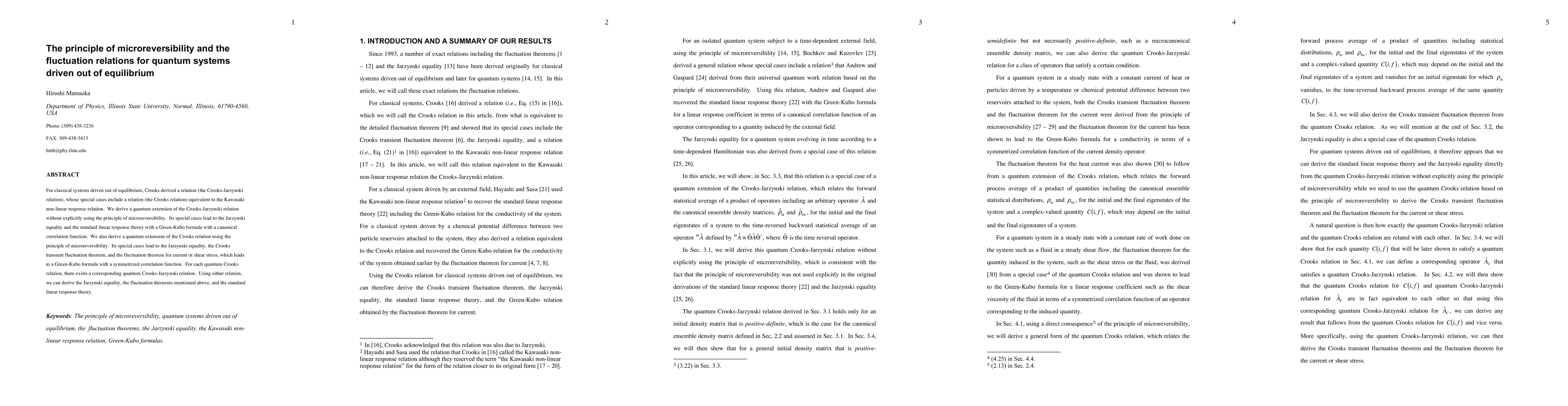 This paper extends the Crooks-Jarzynski relation to quantum systems driven out of equilibrium, deriving quantum versions without relying on microreversibility. It also introduces a quantum extension of the Crooks relation using microreversibility, leading to various fluctuation theorems and linear response theories.