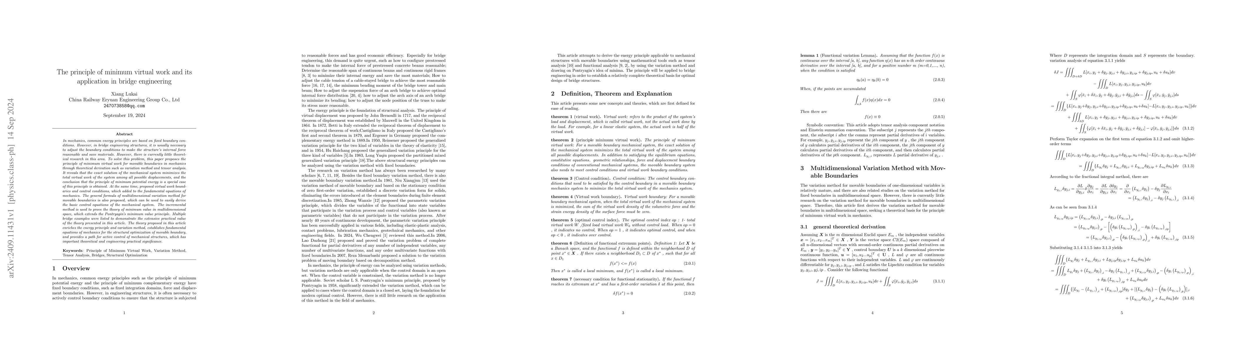 This paper introduces the principle of minimum virtual work for movable boundaries, proposing a theoretical framework to optimize bridge structures by adjusting boundary conditions. It extends traditional energy principles, demonstrating practical applications in bridge engineering with several examples.