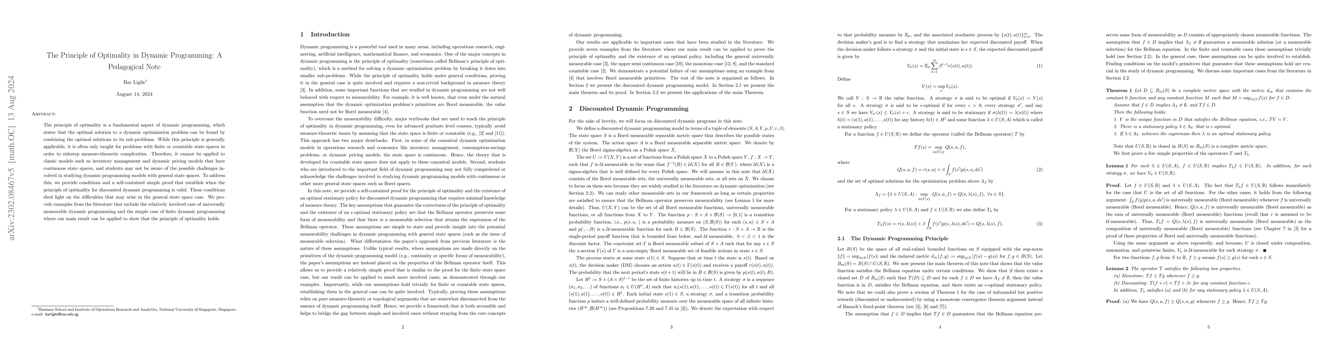 The work introduces a novel approach to understanding and proving the Principle of Optimality in dynamic programming for continuous state spaces, offering conditions and examples not previously available in the literature.