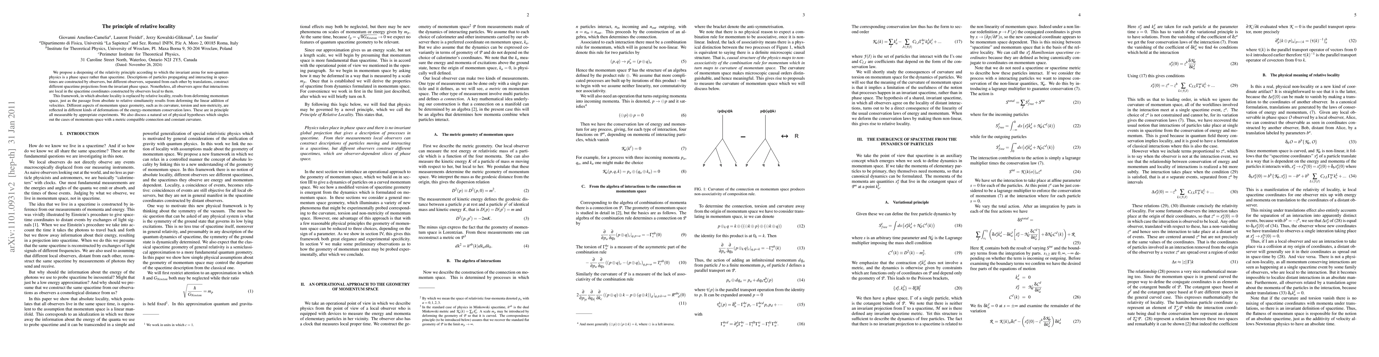 The paper proposes a new relativity principle where interactions are local in observer-specific spacetimes derived from an invariant phase space, replacing absolute locality with relative locality. This framework suggests measurable deformations of energy-momentum conservation laws reflecting momentum space geometry.