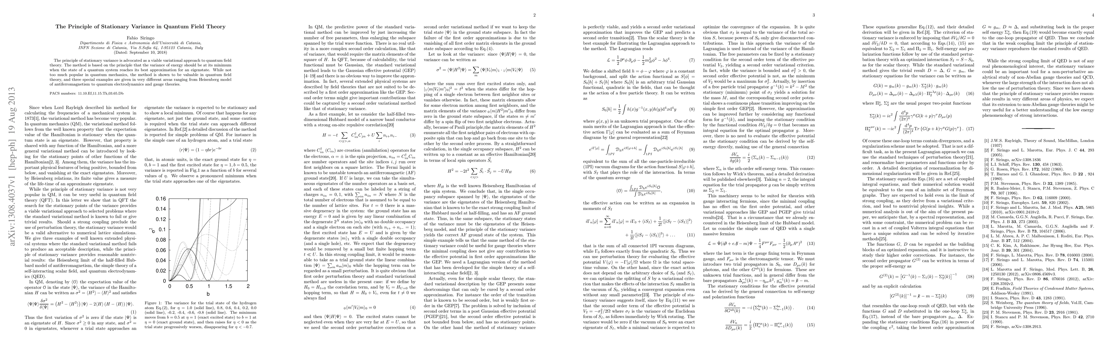The principle of stationary variance is advocated as a viable variational approach to quantum field theory. The method is based on the principle that the variance of energy should be at its minimum when the state of a quantum system reaches its best approximation for an eigenstate. While not too much popular in quantum mechanics, the method is shown to be valuable in quantum field theory, and three special examples are given in very different areas ranging from Heisenberg model of antiferromagnetism to quantum electrodynamics and gauge theories.