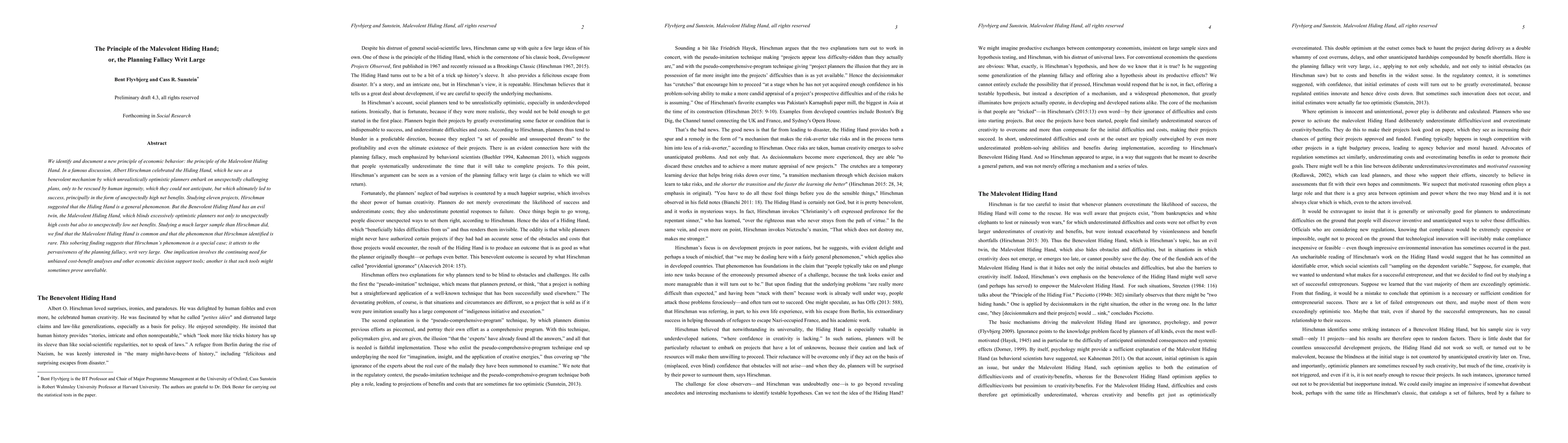 The paper introduces the concept of the Malevolent Hiding Hand as a counter to Hirschman's Benevolent Hiding Hand, providing a comprehensive statistical analysis of project cost overruns and benefit shortfalls.
