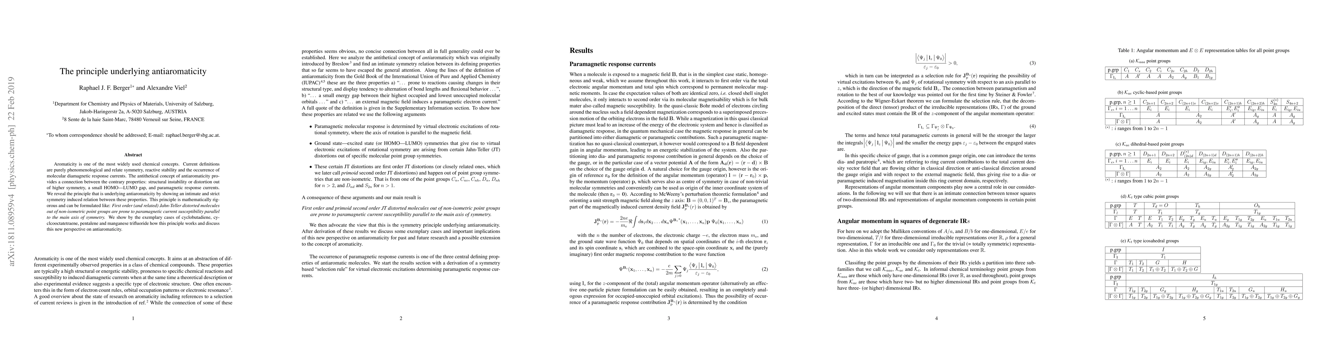 Aromaticity is one of the most widely used chemical concepts. Current definitions are purely phenomenological and relate symmetry, reactive stability and the occurence of molecular diamagnetic response currents. The antithetical concept of antiaromaticity provides a connection between the contrary properties of structural instability or distortion out of higher symmetry, a small HOMO-LUMO gap, and paramagnetic response currents. We reveal the principle that is underlying antiaromaticity in showing an intimate and strict symmetry induced relation between these properties. This principle can be proven and is formulated like: First order (and related) Jahn-Teller distorted molecules out of non-isometric point groups are prone to paramagnetic current susceptibility parallel to the main axis of symmetry. We show by the exemplary cases of cyclobutadiene, cylcooctatetraene, pentalene and manganese trifluoride how this principle works and discuss this new perspective on antiaromaticity.