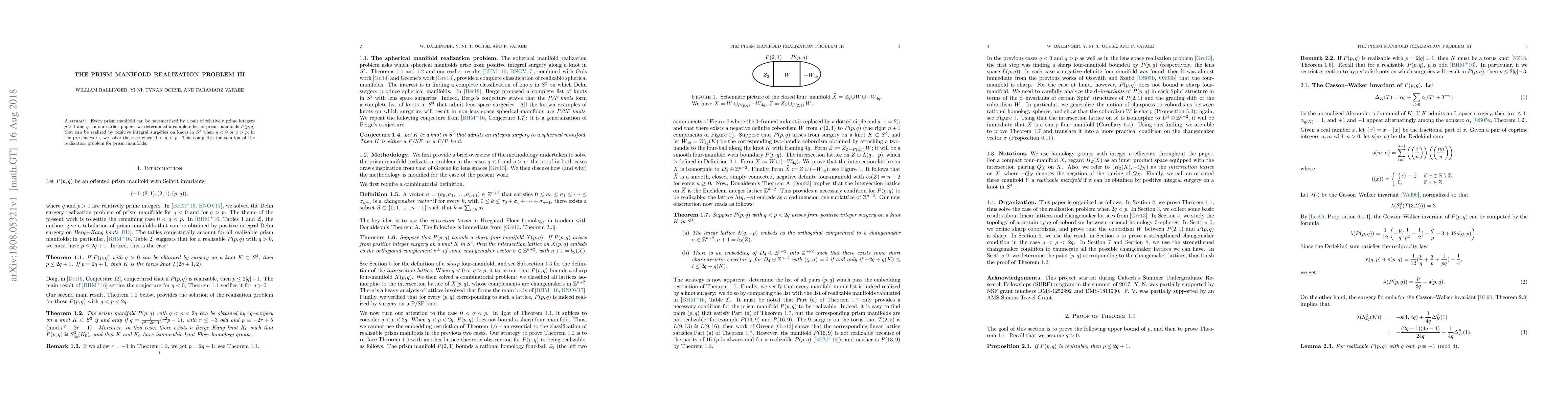 Researchers solve the prism manifold realization problem for a specific case where 0 < q < p, completing the solution of the problem for all possible prism manifolds.