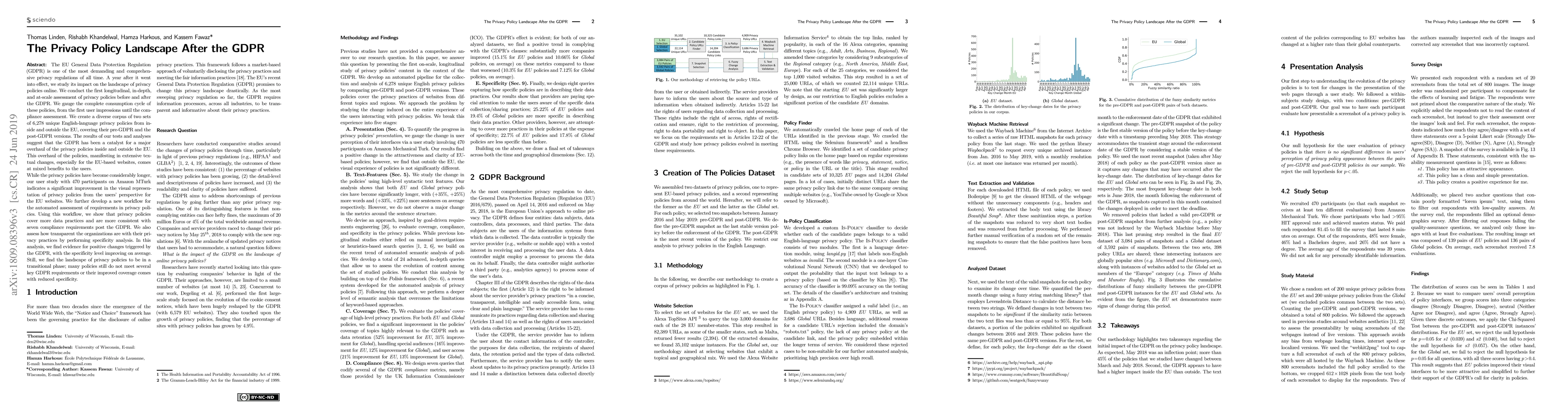 The GDPR has significantly transformed the landscape of privacy policies, leading to extensive textual changes and improved visual representation, particularly for EU-based websites, though many policies still lack full compliance with GDPR requirements.