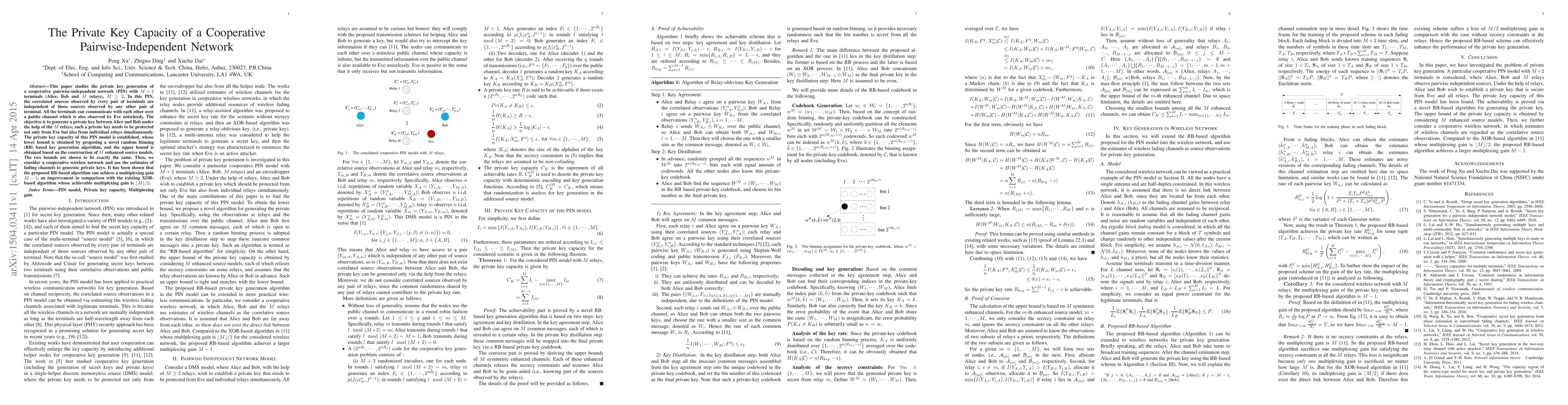 This paper establishes the private key capacity for a cooperative pairwise-independent network (PIN) involving Alice, Bob, and M relays, proposing a novel random binning (RB) algorithm to achieve a lower bound and enhanced source models for the upper bound. The RB-based method demonstrates an M-1 multiplexing gain, surpassing the existing XOR-based algorithm.
