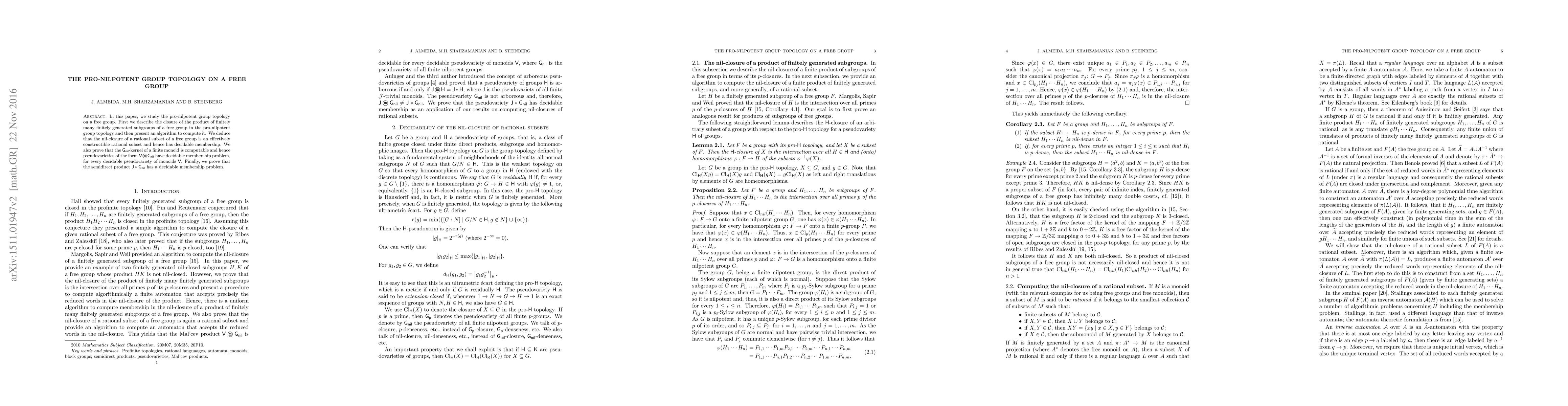 The paper investigates the pro-nilpotent group topology on a free group, focusing on the closure of the product of finitely many subgroups in this topology and presenting an algorithm for computing such closures.