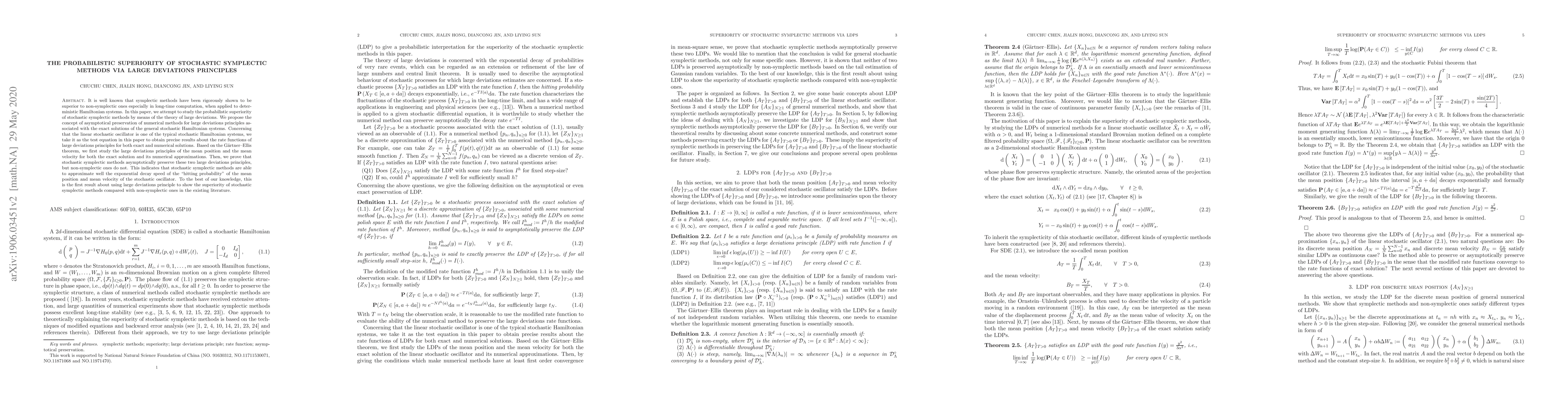 It is well known that symplectic methods have been rigorously shown to be superior to non-symplectic ones especially in long-time computation, when applied to deterministic Hamiltonian systems. In this paper, we attempt to study the probabilistic superiority of stochastic symplectic methods by means of the theory of large deviations. We propose the concept of asymptotical preservation of numerical methods for large deviations principles associated with the exact solutions of the general stochastic Hamiltonian systems. Concerning that the linear stochastic oscillator is one of the typical stochastic Hamiltonian systems, we take it as the test equation in this paper to obtain precise results about the rate functions of large deviations principles for both exact and numerical solutions. Based on the G\"artner--Ellis theorem, we first study the large deviations principles of the mean position and the mean velocity for both the exact solution and its numerical approximations. Then, we prove that stochastic symplectic methods asymptotically preserve these two large deviations principles, but non-symplectic ones do not. This indicates that stochastic symplectic methods are able to approximate well the exponential decay speed of the "hitting probability" of the mean position and mean velocity of the stochastic oscillator. To the best of our knowledge, this is the first result about using large deviations principle to show the superiority of stochastic symplectic methods compared with non-symplectic ones in the existing literature.