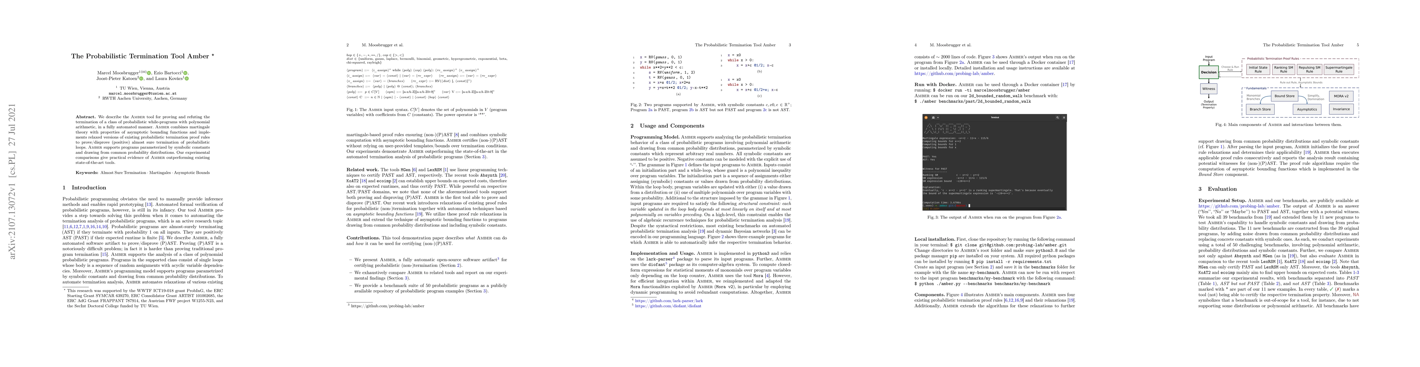 Amber is an automated tool for proving or disproving the termination of probabilistic while-programs using martingale theory and asymptotic bounding functions. Experimental results show Amber outperforms existing tools in practical scenarios.