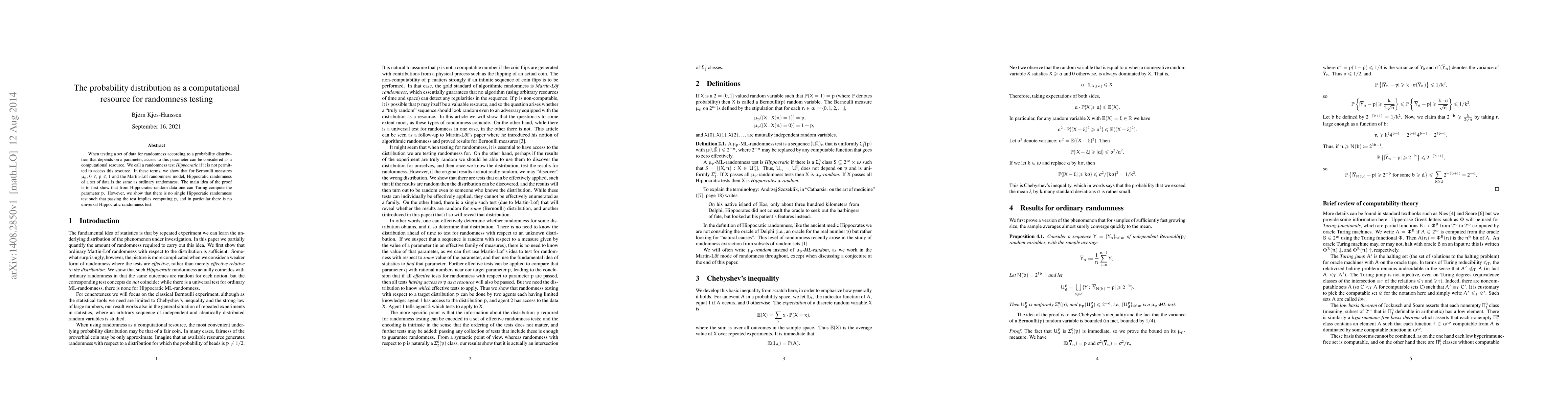 When testing a set of data for randomness according to a probability distribution that depends on a parameter, access to this parameter can be considered as a computational resource. We call a randomness test Hippocratic if it is not permitted to access this resource. In these terms, we show that for Bernoulli measures $\mu_p$, $0\le p\le 1$ and the Martin-L\"of randomness model, Hippocratic randomness of a set of data is the same as ordinary randomness. The main idea of the proof is to first show that from Hippocrates-random data one can Turing compute the parameter $p$. However, we show that there is no single Hippocratic randomness test such that passing the test implies computing $p$, and in particular there is no universal Hippocratic randomness test.
