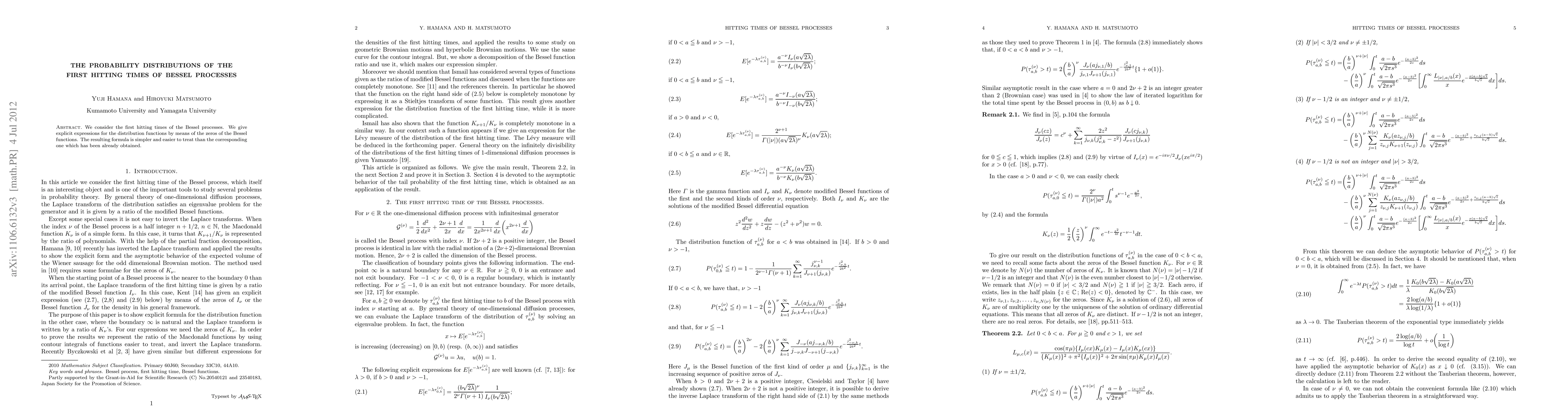 Summary: This paper provides explicit expressions for the distribution functions and densities of the first hitting times of Bessel processes, utilizing the zeros of Bessel functions. It extends classical results to cover all possible cases comprehensively.