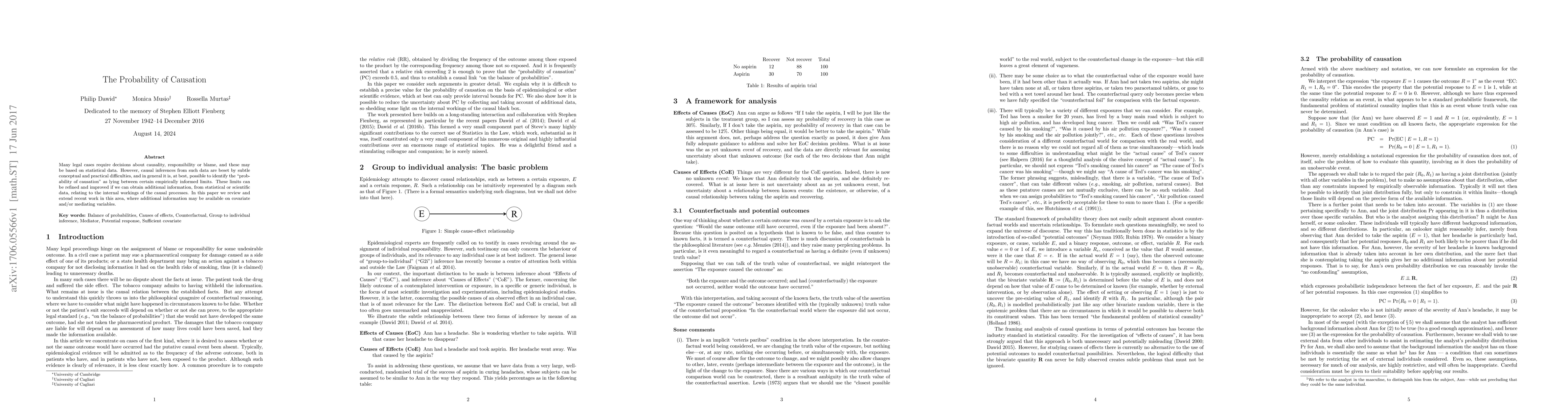 Many legal cases require decisions about causality, responsibility or blame, and these may be based on statistical data. However, causal inferences from such data are beset by subtle conceptual and practical difficulties, and in general it is, at best, possible to identify the "probability of causation" as lying between certain empirically informed limits. These limits can be refined and improved if we can obtain additional information, from statistical or scientific data, relating to the internal workings of the causal processes. In this paper we review and extend recent work in this area, where additional information may be available on covariate and/or mediating variables.