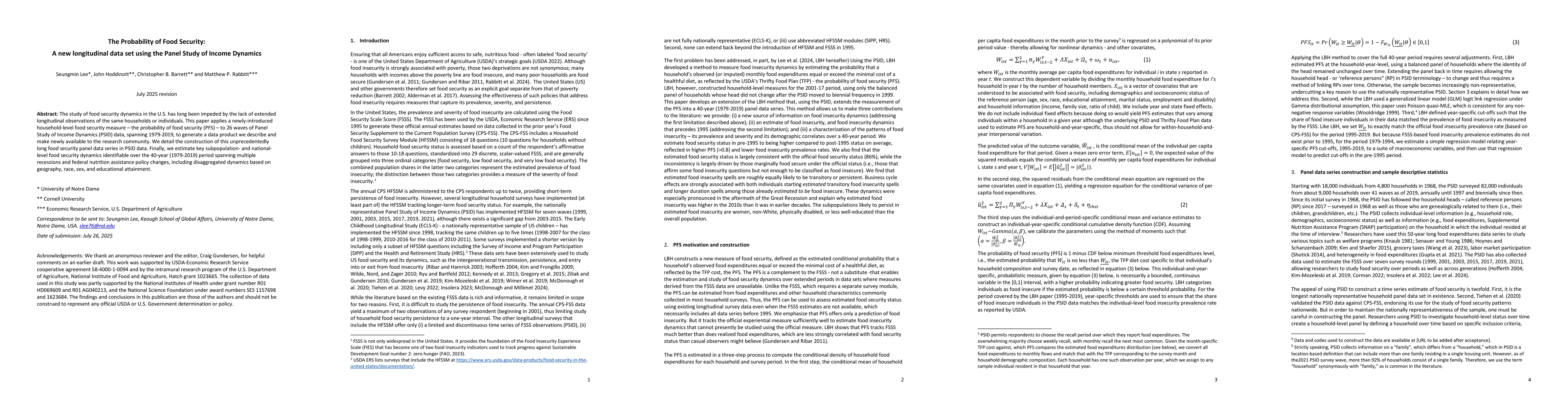 The study of food security dynamics in the U.S. has long been impeded by the lack of extended longitudinal observations of the same households or individuals. This paper applies a newly-introduced household-level food security measure, the probability of food security (PFS), to 26 waves of Panel Study of Income Dynamics (PSID) data, spanning 1979-2019, to generate a data product we describe and make newly available to the research community. We detail the construction of this unprecedentedly long food security panel data series in PSID data. Finally, we estimate key subpopulation- and national-level food security dynamics identifiable over the 40-year (1979-2019) period spanning multiple recessions and federal nutrition assistance policy changes, including disaggregated dynamics based on geography, race, sex, and educational attainment.