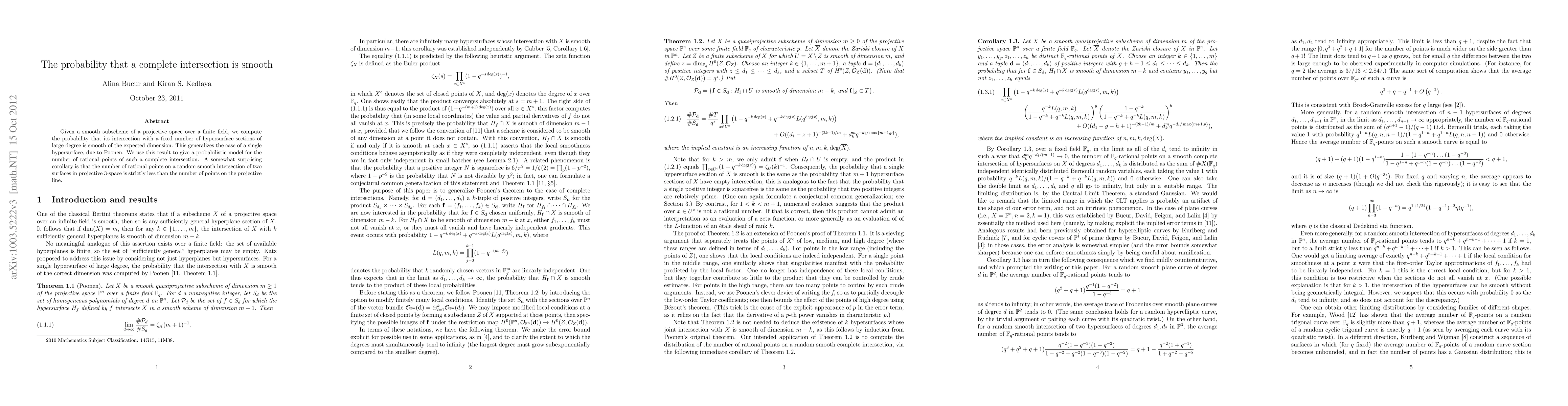 The paper computes the probability that a smooth subscheme in projective space, intersected with multiple high-degree hypersurfaces, remains smooth, generalizing previous results. It also uses this to model the number of rational points in such intersections, finding that random intersections of two surfaces in projective 3-space have fewer rational points than a projective line.