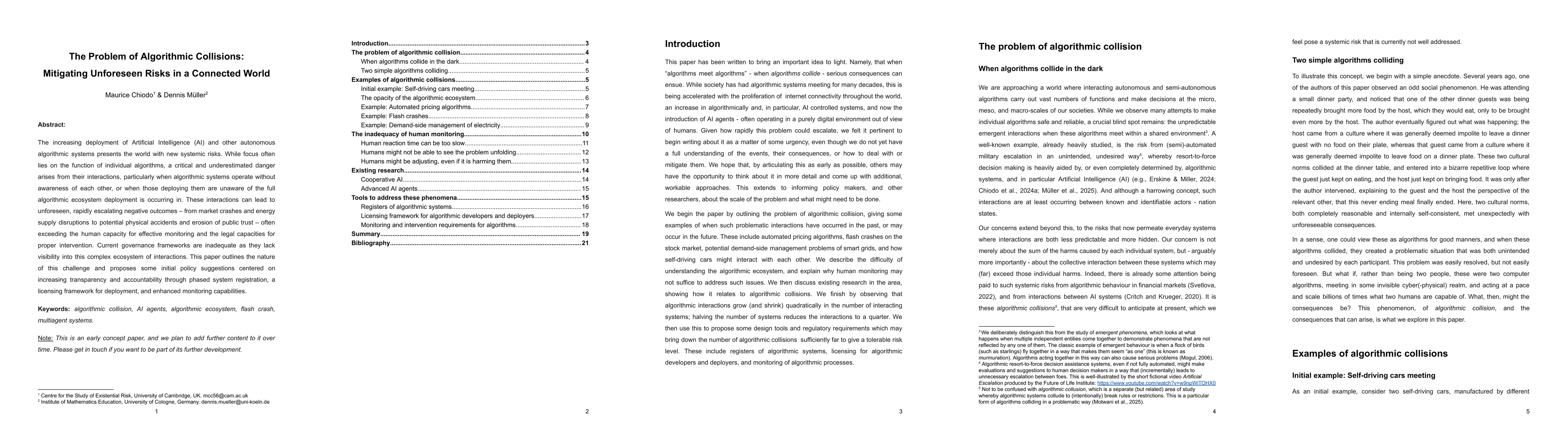 Not explicitly stated in the provided content, but implied to involve analysis of current AI and algorithmic systems, identification of risks from their interactions, and proposal of policy suggestions.