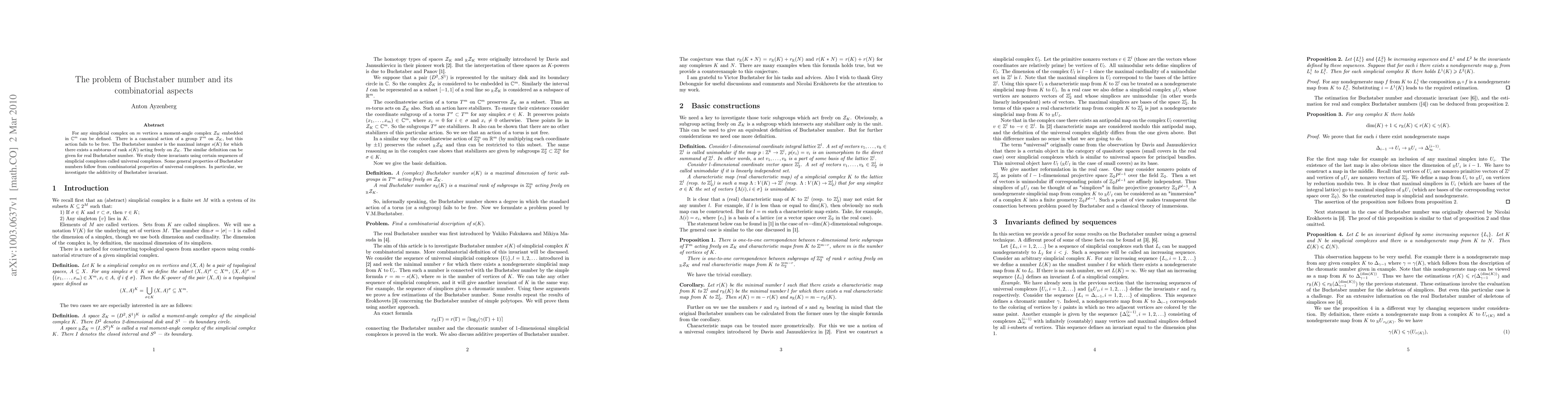 For any simplicial complex on m vertices a moment-angle complex Z_K embedded in C^m can be defined. There is a canonical action of a torus T^m on Z_K, but this action fails to be free. The Buchstaber number is the maximal integer s(K) for which there exists a subtorus of rank s(K) acting freely on Z_K. The similar definition can be given for real Buchstaber number. We study these invariants using certain sequences of simplicial complexes called universal complexes. Some general properties of Buchstaber numbers follow from combinatorial properties of universal complexes. In particular, we investigate the additivity of Buchstaber invariant.