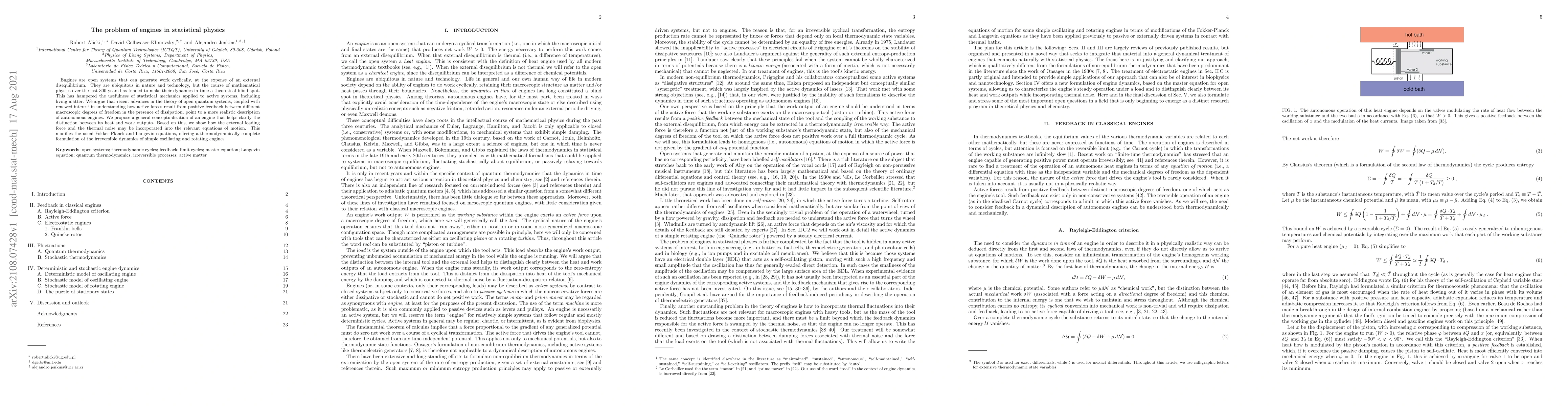 Engines are open systems that can generate work cyclically, at the expense of an external disequilibrium. They are ubiquitous in nature and technology, but the course of mathematical physics over the last 300 years has tended to make their dynamics in time a theoretical blind spot. This has hampered the usefulness of statistical mechanics applied to active systems, including living matter. We argue that recent advances in the theory of open quantum systems, coupled with renewed interest in understanding how active forces result from positive feedback between different macroscopic degrees of freedom in the presence of dissipation, point to a more realistic description of autonomous engines. We propose a general conceptualization of an engine that helps clarify the distinction between its heat and work outputs. Based on this, we show how the external loading force and the thermal noise may be incorporated into the relevant equations of motion. This modifies the usual Fokker-Planck and Langevin equations, offering a thermodynamically complete formulation of the irreversible dynamics of simple oscillating and rotating engines.