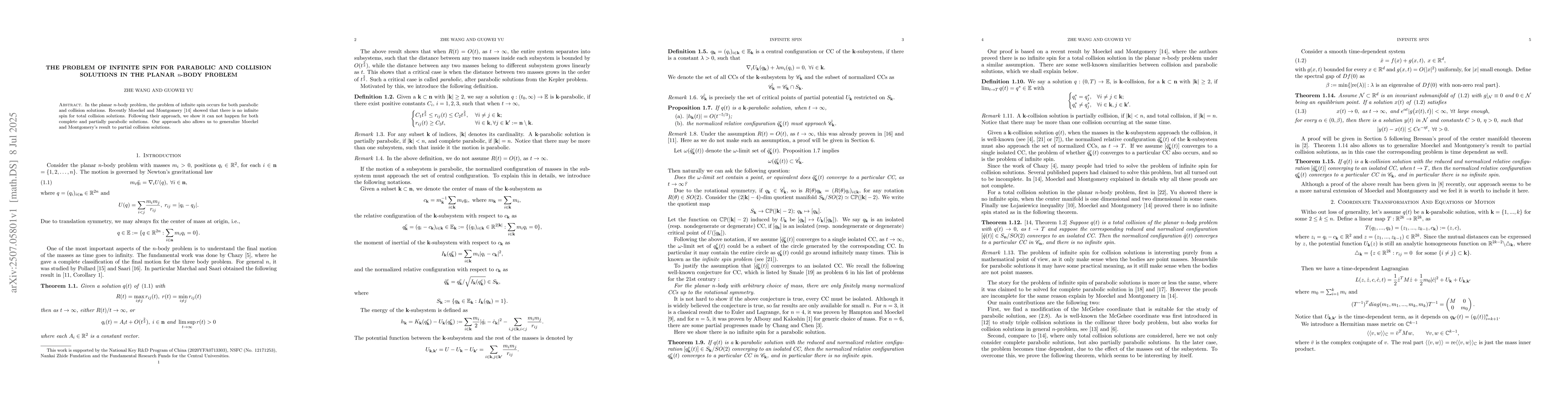 The paper introduces a modified McGehee coordinate system and utilizes asymptotic estimates to prove the absence of infinite spin for parabolic and collision solutions in the planar n-body problem.