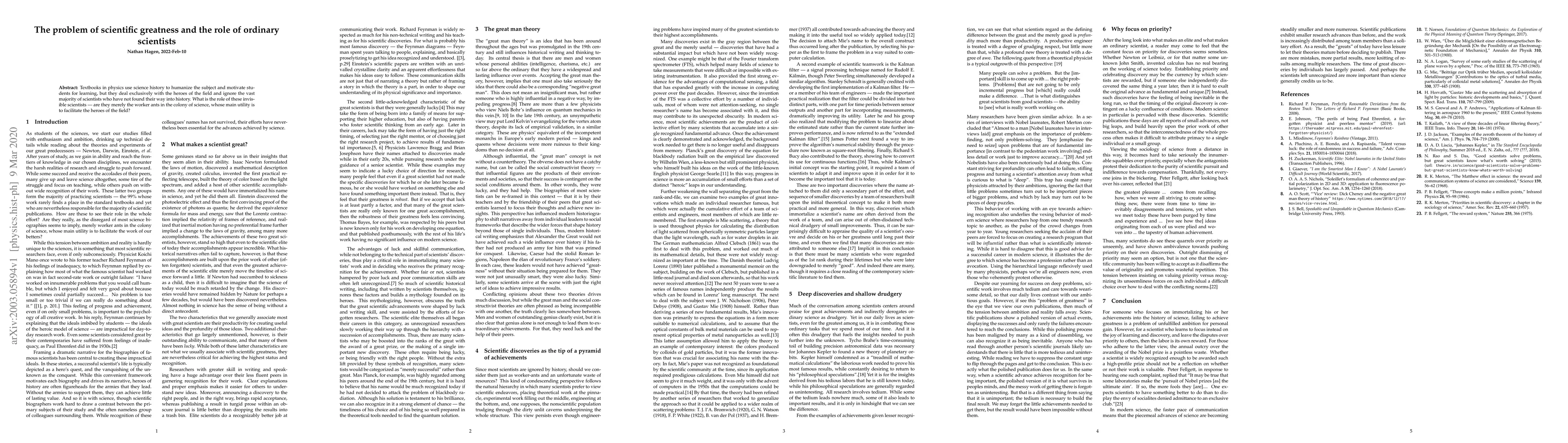 Textbooks in physics use science history to humanize the subject and motivate students for learning, but they deal exclusively with the heroes of the field and ignore the vast majority of scientists who have not found their way into history. What is the role of these invisible scientists --- are they merely the worker ants in the colony of science, whose main utility is to facilitate the heroes of the field?