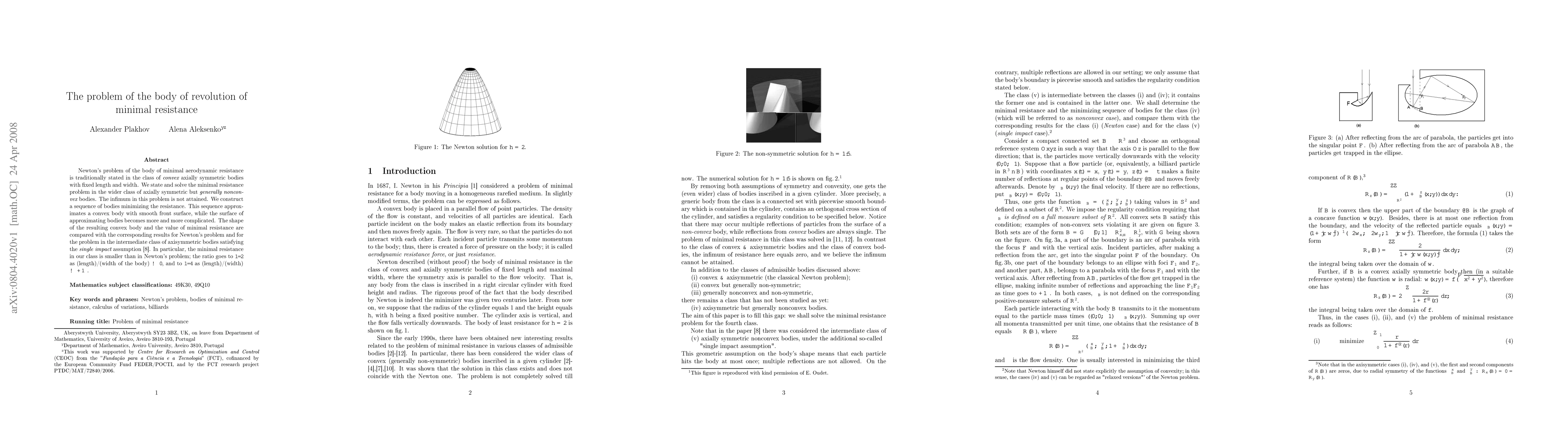 Researchers extend Newton's minimal resistance problem to nonconvex bodies, finding a sequence of bodies that minimize resistance, which approximates a convex body with smooth surface.