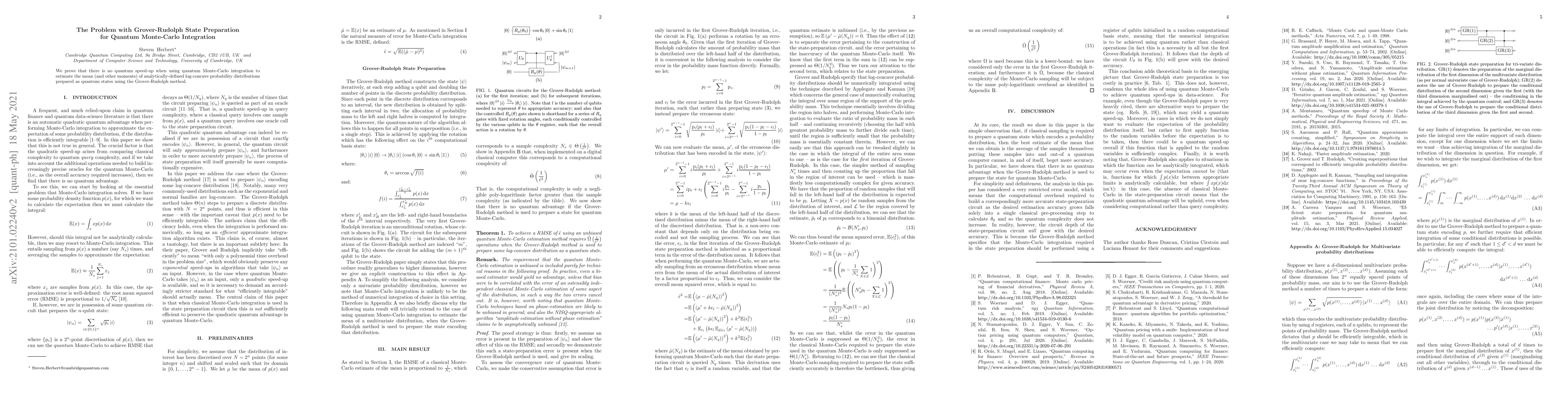 Researchers found that using quantum Monte-Carlo to estimate mean values from log-concave probability distributions prepared with the Grover-Rudolph method does not provide a quantum speed-up. The method is equivalent to classical methods for this specific problem.