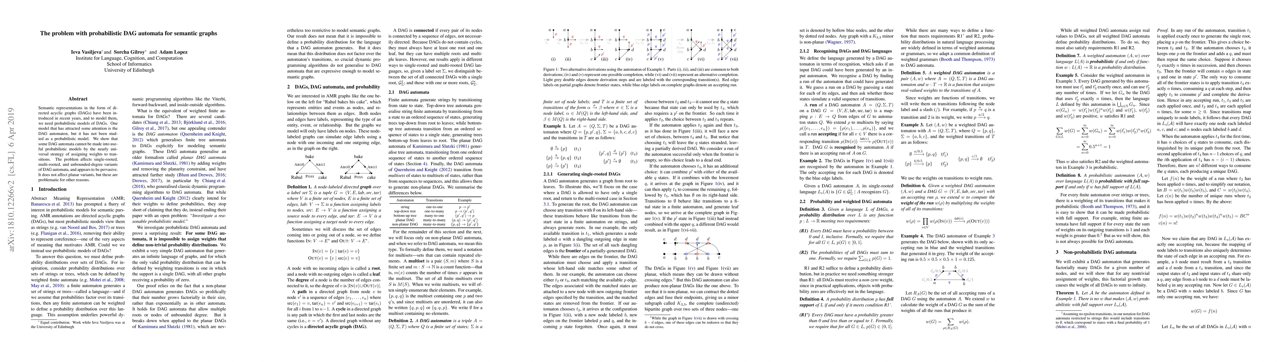 Semantic representations in the form of directed acyclic graphs (DAGs) have been introduced in recent years, and to model them, we need probabilistic models of DAGs. One model that has attracted some attention is the DAG automaton, but it has not been studied as a probabilistic model. We show that some DAG automata cannot be made into useful probabilistic models by the nearly universal strategy of assigning weights to transitions. The problem affects single-rooted, multi-rooted, and unbounded-degree variants of DAG automata, and appears to be pervasive. It does not affect planar variants, but these are problematic for other reasons.