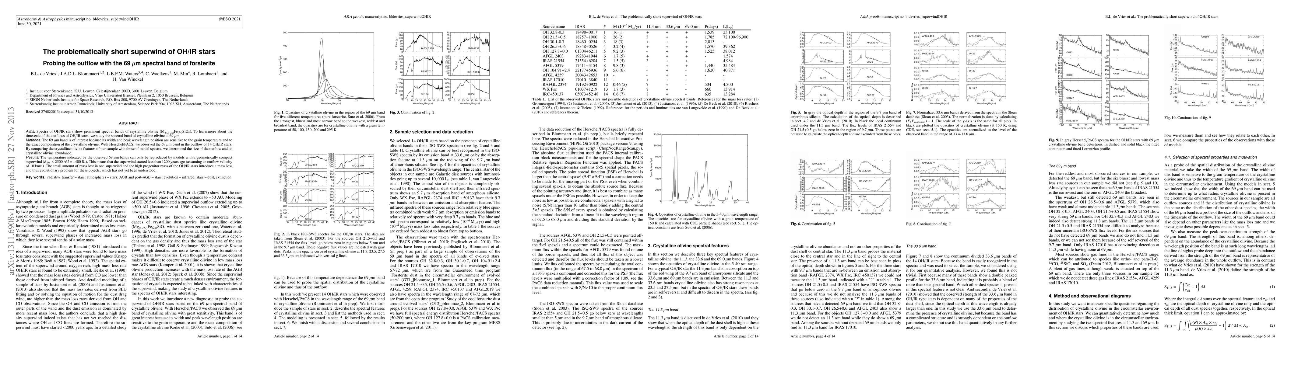 Spectra of OH/IR stars show prominent spectral bands of crystalline olivine (Mg$_{(2-2x)}$Fe$_{(2x)}$SiO$_{4}$). To learn more about the timescale of the outflows of OH/IR stars, we study the spectral band of crystalline olivine at 69 {\mu}m. The 69 {\mu}m band is of interest because its width and peak wavelength position are sensitive to the grain temperature and to the exact composition of the crystalline olivine. With Herschel/PACS, we observed the 69 {\mu}m band in the outflow of 14 OH/IR stars. By comparing the crystalline olivine features of our sample with those of model spectra, we determined the size of the outflow and its crystalline olivine abundance. The temperature indicated by the observed 69 {\mu}m bands can only be reproduced by models with a geometrically compact superwind ($R_{\rm{SW}}\lesssim$ 2500 AU = 1400 R$_{*}$).This means that the superwind started less than 1200 years ago (assuming an outflow velocity of 10 km/s). The small amount of mass lost in one superwind and the high progenitor mass of the OH/IR stars introduce a mass loss and thus evolutionary problem for these objects, which has not yet been understood.