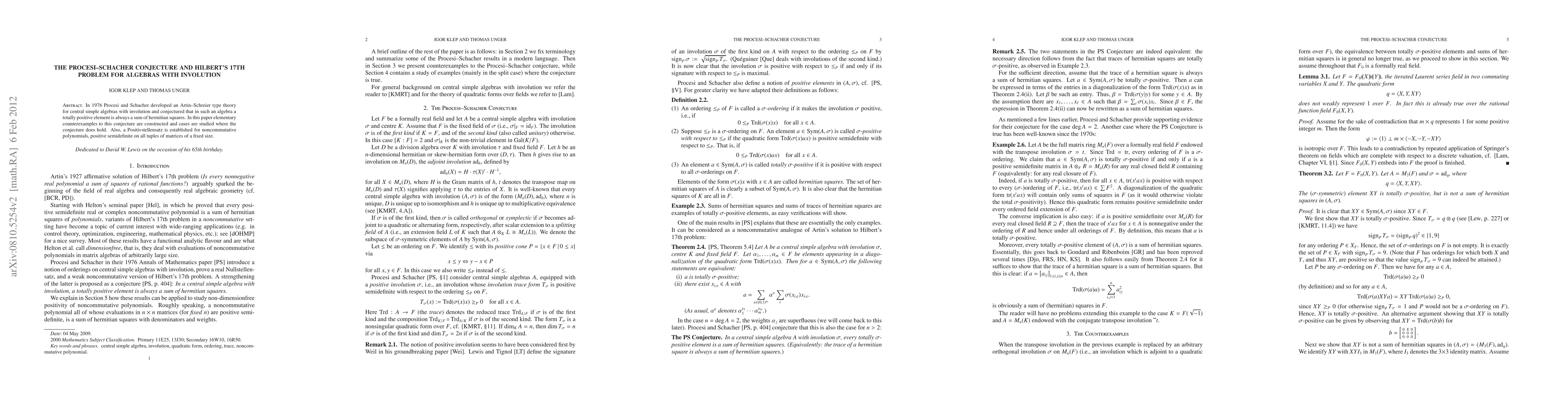 In 1976 Procesi and Schacher developed an Artin-Schreier type theory for central simple algebras with involution and conjectured that in such an algebra a totally positive element is always a sum of hermitian squares. In this paper elementary counterexamples to this conjecture are constructed and cases are studied where the conjecture does hold. Also, a Positivstellensatz is established for noncommutative polynomials, positive semidefinite on all tuples of matrices of a fixed size.