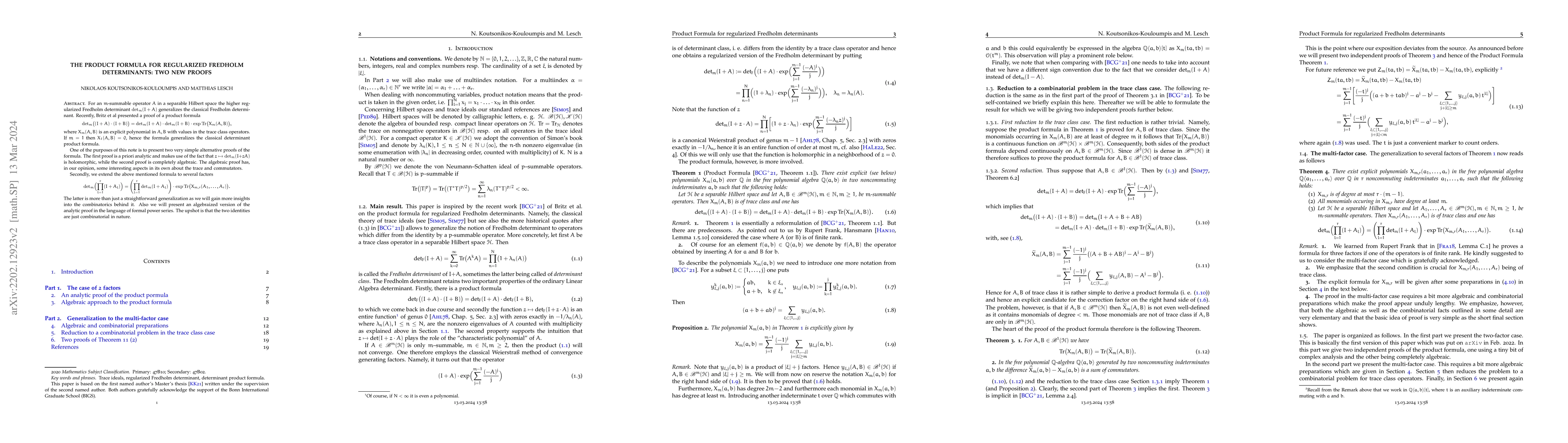 This paper presents two new proofs for the product formula of regularized Fredholm determinants for $m$-summable operators in a separable Hilbert space. It also extends the formula to multiple factors and discusses its combinatorial insights, with one proof being analytic and the other algebraic.