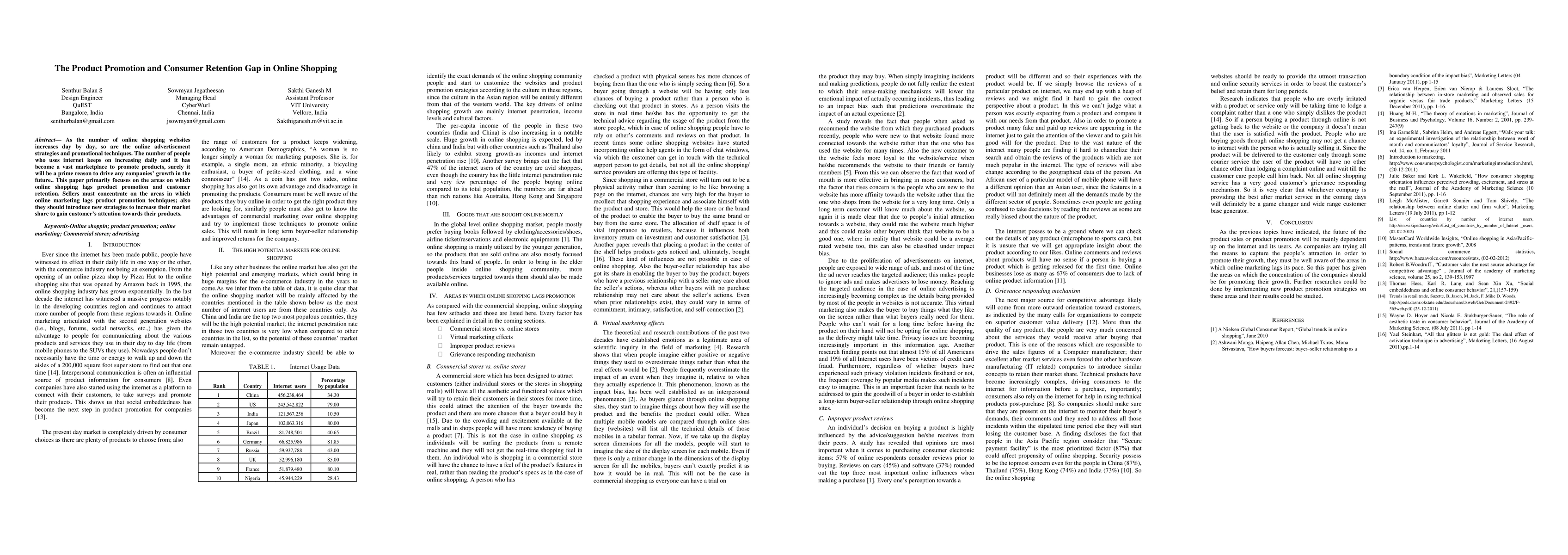 This paper investigates the gaps between product promotion and consumer retention in online shopping, highlighting areas where online marketing strategies lag. It emphasizes the need for innovative strategies to enhance market share and customer engagement in the growing online marketplace.