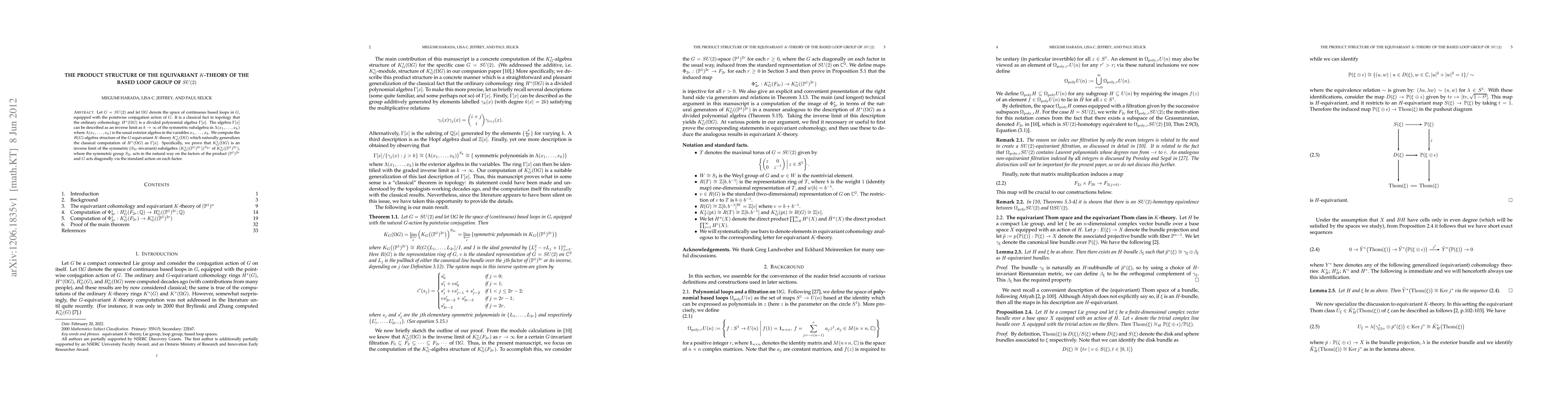 Let G=SU(2) and let \Omega G denote the space of continuous based loops in G, equipped with the pointwise conjugation action of G. It is a classical fact in topology that the ordinary cohomology H^*(\Omega G) is a divided polynomial algebra \Gamma[x]. The algebra \Gamma[x] can be described as an inverse limit as k goes to infinity of the symmetric subalgebra in the exterior algebra \Lambda(x_1, ...,x_k) in the variables x_1, ..., x_k. We compute the R(G)-algebra structure of the G-equivariant K-theory of \Omega G in a way which naturally generalizes the classical computation of the ordinary cohomology ring of \Omega G as a divided polynomial algebra \Gamma[x]. Specifically, we prove that K^*_G(\Omega G) is an inverse limit of the symmetric (S_{2r}-invariant) subalgebra of K^*_G((P^1)^{2r}), where the symmetric group S_{2r} acts in the natural way on the factors of the 2r-fold product (P^1)^{2r} and G acts diagonally via the standard action on each complex projective line P^1.