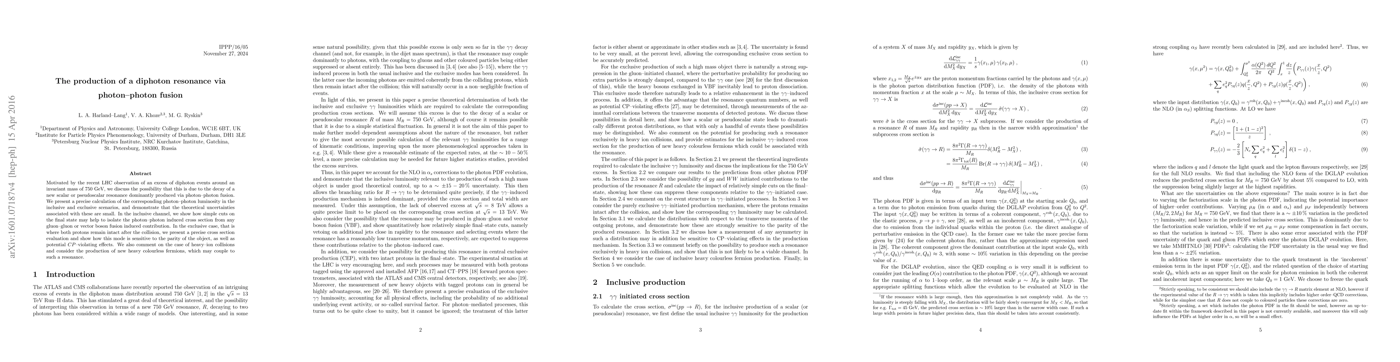 Motivated by the recent LHC observation of an excess of diphoton events around an invariant mass of 750 GeV, we discuss the possibility that this is due to the decay of a new scalar or pseudoscalar resonance dominantly produced via photon-photon fusion. We present a precise calculation of the corresponding photon-photon luminosity in the inclusive and exclusive scenarios, and demonstrate that the theoretical uncertainties associated with these are small. In the inclusive channel, we show how simple cuts on the final state may help to isolate the photon-photon induced cross section from any gluon-gluon or vector boson fusion induced contribution. In the exclusive case, that is where both protons remain intact after the collision, we present a precise cross section evaluation and show how this mode is sensitive to the parity of the object, as well as potential $CP$-violating effects. We also comment on the case of heavy-ion collisions and consider the production of new heavy colourless fermions, which may couple to such a resonance.