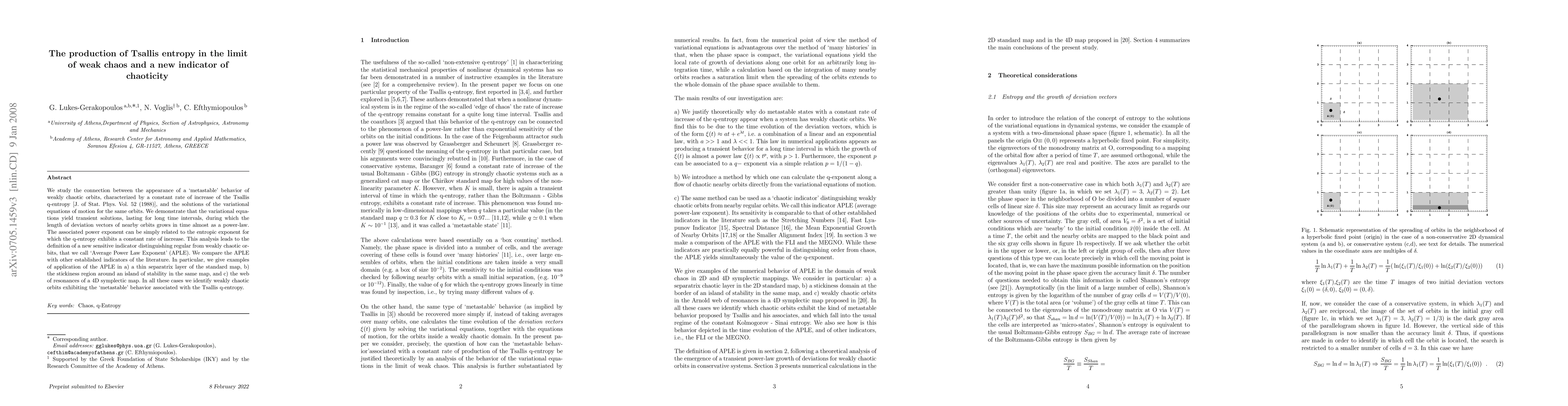 We study the connection between the appearance of a `metastable' behavior of weakly chaotic orbits, characterized by a constant rate of increase of the Tsallis q-entropy (Tsallis 1988), and the solutions of the variational equations of motion for the same orbits. We demonstrate that the variational equations yield transient solutions, lasting for long time intervals, during which the length of deviation vectors of nearby orbits grows in time almost as a power-law. The associated power exponent can be simply related to the entropic exponent for which the q-entropy exhibits a constant rate of increase. This analysis leads to the definition of a new sensitive indicator distinguishing regular from weakly chaotic orbits, that we call `Average Power Law Exponent' (APLE). We compare the APLE with other established indicators of the literature. In particular, we give examples of application of the APLE in a) a thin separatrix layer of the standard map, b) the stickiness region around an island of stability in the same map, and c) the web of resonances of a 4D symplectic map. In all these cases we identify weakly chaotic orbits exhibiting the `metastable' behavior associated with the Tsallis q-entropy.