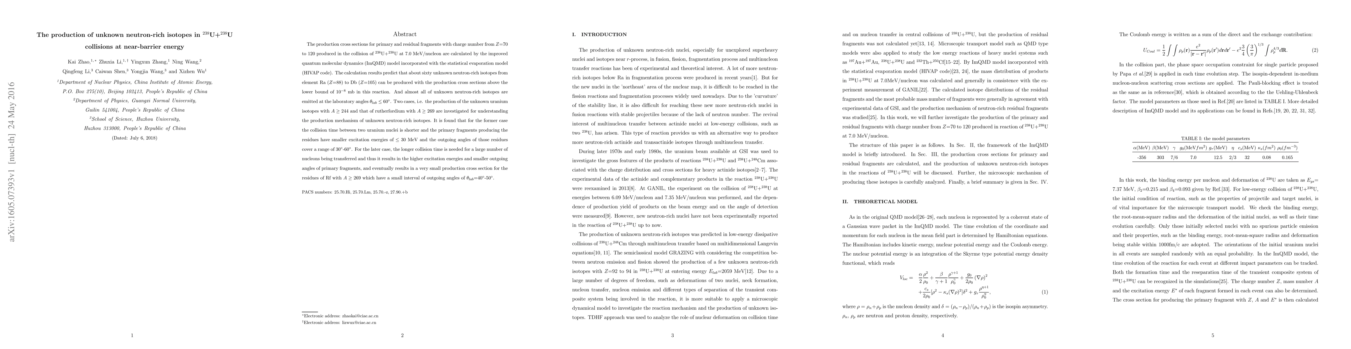 This study uses the improved quantum molecular dynamics (ImQMD) model to predict the production of about sixty unknown neutron-rich isotopes from Ra ($Z$=88) to Db ($Z$=105) in $^{238}$U+$^{238}$U collisions at 7.0 MeV/nucleon. The analysis reveals that these isotopes are produced with cross sections above $10^{-8}$ mb and predominantly emitted at laboratory angles $\theta_{lab}\leq$ 60$^\circ$.