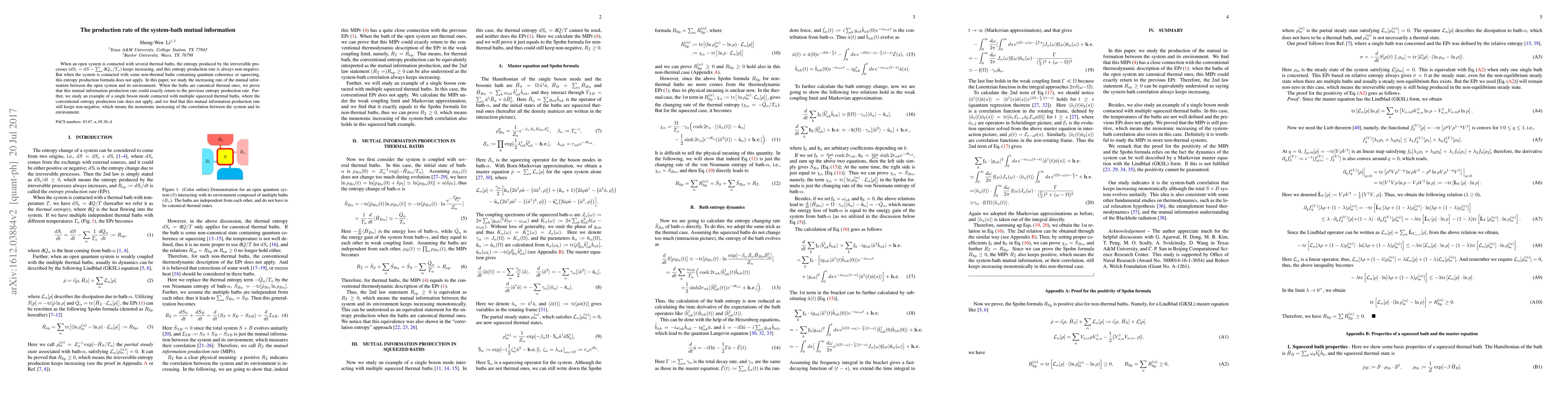 When an open system is contacted with several thermal baths, the entropy produced by the irreversible processes ($dS_{\mathrm{i}}=dS-\sum_{\alpha}\text{\dj}Q_{\alpha}/T_{\alpha}$) keeps increasing, and this entropy production rate is always non-negative. But when the system is contacted with some non-thermal baths containing quantum coherence or squeezing, this entropy production formula does not apply. In this paper, we study the increasing rate of the mutual information between the open system and its environment. When the baths are canonical thermal ones, we prove that this mutual information production rate could exactly return to the previous entropy production rate. Further, we study an example of a single boson mode contacted with multiple squeezed thermal baths, where the conventional entropy production rate does not apply, and we find that this mutual information production rate still keeps non-negative, which means the monotonic increasing of the correlation between the system and its environment.