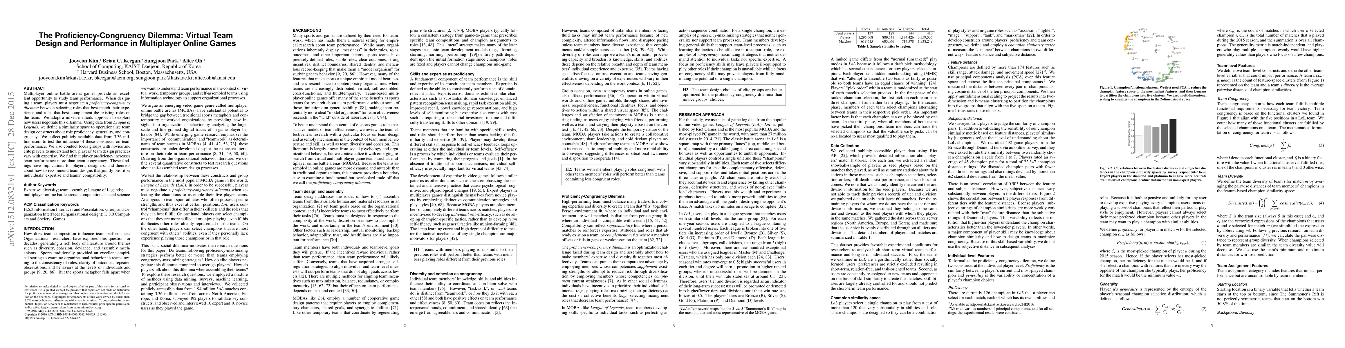 This research investigates how players negotiate the "proficiency-congruency dilemma" in designing teams for multiplayer online games, using data from 3.36 million users of "League of Legends." It finds that player proficiency significantly boosts team performance more than congruency, suggesting recommendations for optimizing team designs should prioritize individual expertise.
