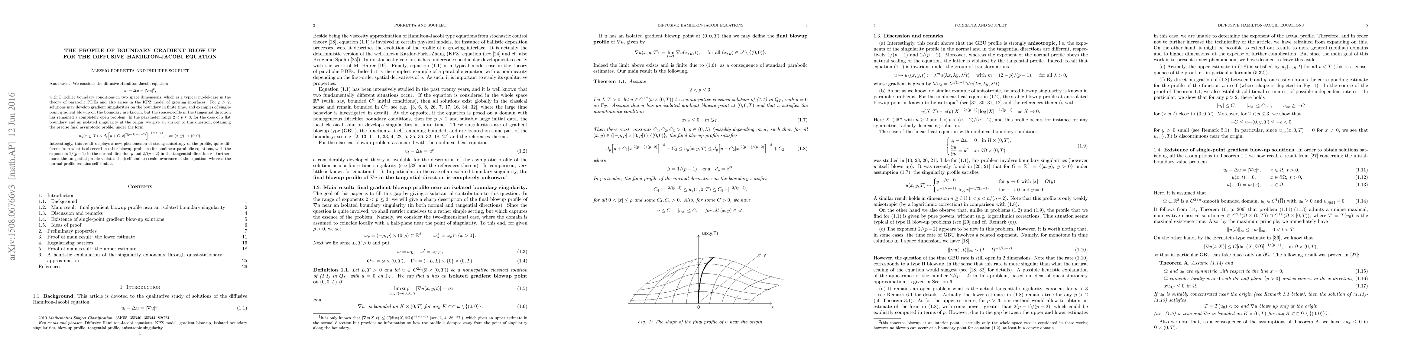 We consider the diffusive Hamilton-Jacobi equation $$u_t-\Delta u=|\nabla u|^p,$$ with Dirichlet boundary conditions in two space dimensions, which arises in the KPZ model of growing interfaces. For $p>2$, solutions may develop gradient singularities on the boundary in finite time, and examples of single-point gradient blowup on the boundary are known, but the space-profile in the tangential direction has remained a completely open problem. In the parameter range $2