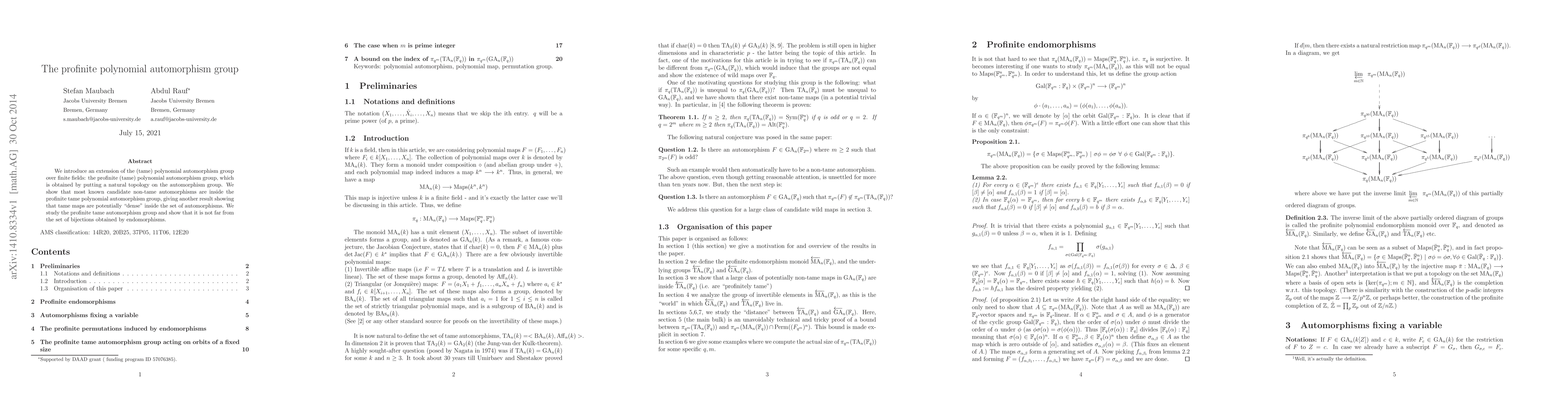 Summary: This paper extends the polynomial automorphism group over finite fields by introducing a profinite topology, demonstrating that many non-tame candidates fall within this profinite tame group, and showing that tame maps are densely embedded within the automorphism set. It also reveals that the profinite tame automorphism group closely resembles the set of bijections from endomorphisms.