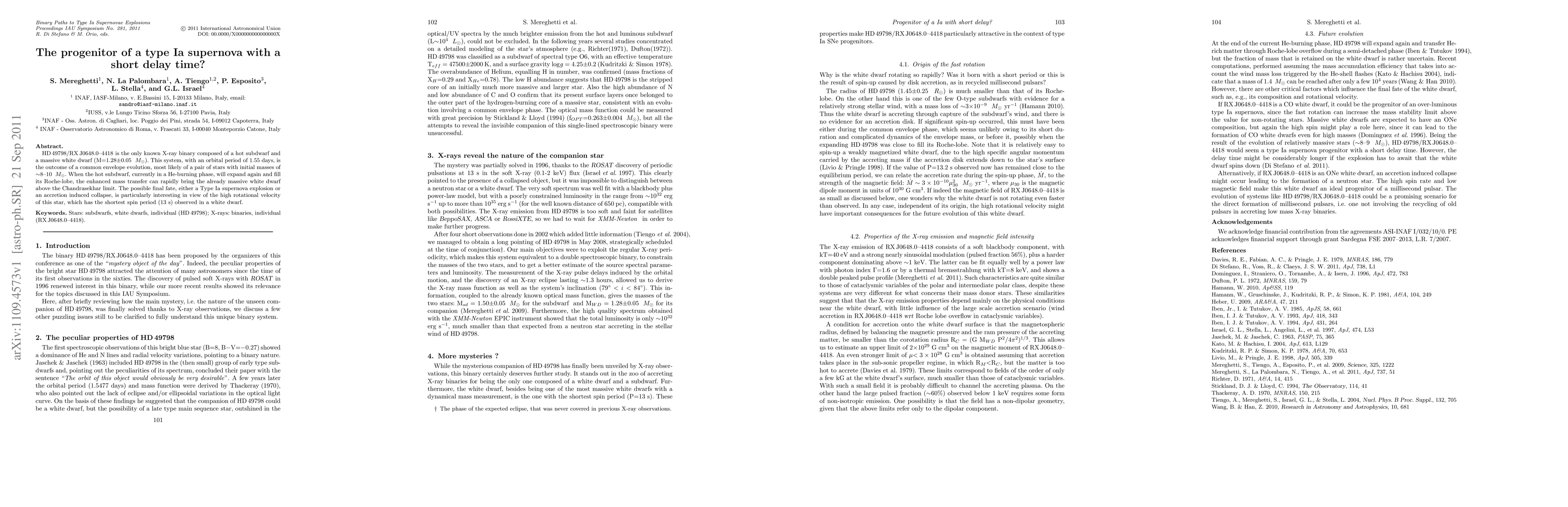 HD49798/RXJ0648.0-4418 is the only known X-ray binary composed of a hot subdwarf and a massive white dwarf (M=1.28+/-0.05 Msun). This system, with an orbital period of 1.55 days, is the outcome of a common envelope evolution, most likely of a pair of stars with initial masses of about 8-10 Msun. When the hot subdwarf, currently in a He-burning phase, will expand again and fill its Roche-lobe, the enhanced mass transfer can rapidly bring the already massive white dwarf above the Chandrasekhar limit. The possible final fate, either a Type Ia supernova explosion or an accretion induced collapse, is particularly interesting in view of the high rotational velocity of this star, which has the shortest spin period (13 s) observed in a white dwarf.