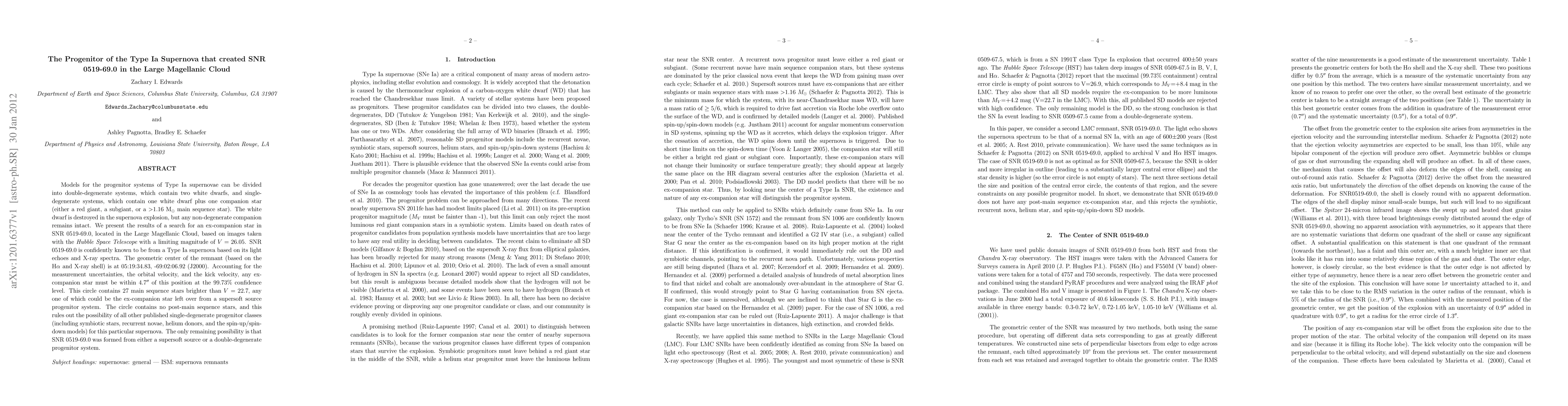 Models for the progenitor systems of Type Ia supernovae can be divided into double-degenerate systems, which contain two white dwarfs, and single-degenerate systems, which contain one white dwarf plus one companion star (either a red giant, a subgiant, or a >1.16 M_sol main sequence star). The white dwarf is destroyed in the supernova explosion, but any non-degenerate companion remains intact. We present the results of a search for an ex-companion star in SNR 0519-69.0, located in the Large Magellanic Cloud, based on images taken with the Hubble Space Telescope with a limiting magnitude of V = 26.05. SNR 0519-69.0 is confidently known to be from a Type Ia supernova based on its light echoes and X-ray spectra. The geometric center of the remnant (based on the H-alpha and X-ray shell) is at 05:19:34.83, -69:02:06.92 (J2000). Accounting for the measurement uncertainties, the orbital velocity, and the kick velocity, any ex-companion star must be within 4.7" of this position at the 99.73% confidence level. This circle contains 27 main sequence stars brighter than V = 22.7, any one of which could be the ex-companion star left over from a supersoft source progenitor system. The circle contains no post-main sequence stars, and this rules out the possibility of all other published single-degenerate progenitor classes (including symbiotic stars, recurrent novae, helium donors, and the spin-up/spin-down models) for this particular supernova. The only remaining possibility is that SNR 0519-69.0 was formed from either a supersoft source or a double-degenerate progenitor system.