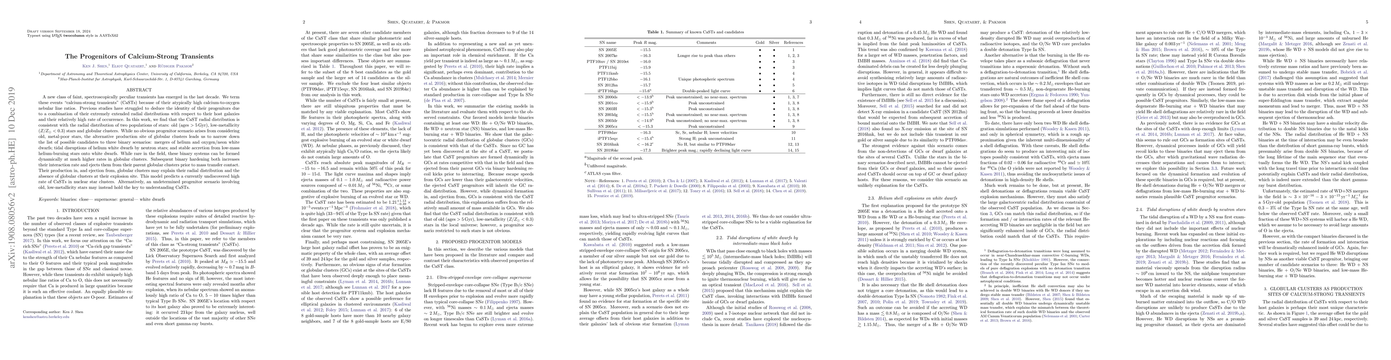 A new class of faint, spectroscopically peculiar transients has emerged in the last decade. We term these events "calcium-strong transients" (CaSTs) because of their atypically high calcium-to-oxygen nebular line ratios. Previous studies have struggled to deduce the identity of their progenitors due to a combination of their extremely extended radial distributions with respect to their host galaxies and their relatively high rate of occurrence. In this work, we find that the CaST radial distribution is consistent with the radial distribution of two populations of stars: old (ages > 5 Gyr), low-metallicity (Z/Zsol < 0.3) stars and globular clusters. While no obvious progenitor scenario arises from considering old, metal-poor stars, the alternative production site of globular clusters leads us to narrow down the list of possible candidates to three binary scenarios: mergers of helium and oxygen/neon white dwarfs; tidal disruptions of helium white dwarfs by neutron stars; and stable accretion from low-mass helium-burning stars onto white dwarfs. While rare in the field, these binary systems can be formed dynamically at much higher rates in globular clusters. Subsequent binary hardening both increases their interaction rate and ejects them from their parent globular clusters prior to mass transfer contact. Their production in, and ejection from, globular clusters may explain their radial distribution and the absence of globular clusters at their explosion site. This model predicts a currently undiscovered high rate of CaSTs in nuclear star clusters. Alternatively, an undetermined progenitor scenario involving old, low-metallicity stars may instead hold the key to understanding CaSTs.