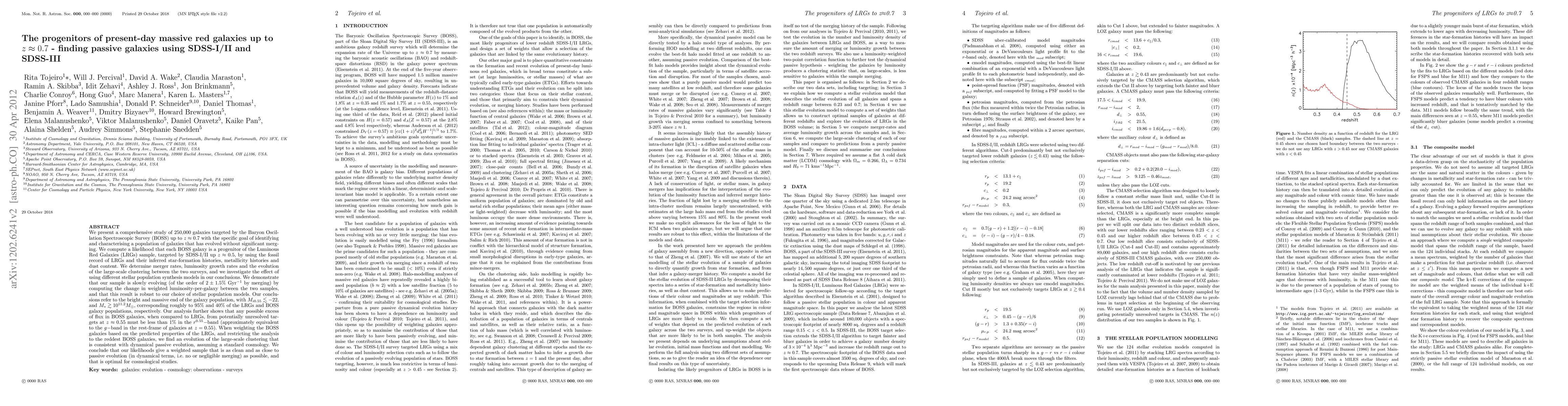 We present a comprehensive study of 250,000 galaxies targeted by the Baryon Oscillation Spectroscopic Survey (BOSS) up to z ~ 0.7 with the specific goal of identifying and characterising a population of galaxies that has evolved without significant merging. We compute a likelihood that each BOSS galaxy is a progenitor of the Luminous Red Galaxies (LRGs) sample, targeted by SDSS-I/II up z ~ 0.5, by using the fossil record of LRGs and their inferred star-formation histories, metallicity histories and dust content. We determine merger rates, luminosity growth rates and the evolution of the large-scale clustering between the two surveys, and we investigate the effect of using different stellar population synthesis models in our conclusions. We demonstrate that our sample is slowly evolving (of the order of 2 +/- 1.5% per Gyr by merging). Our conclusions refer to the bright and massive end of the galaxy population, with Mi0.55 < -22, and M* > 1E11.2 Msolar, corresponding roughly to 95% and 40% of the LRGs and BOSS galaxy populations, respectively. Our analysis further shows that any possible excess of flux in BOSS galaxies, when compared to LRGs, from potentially unresolved targets at z ~ 0.55 must be less than 1% in the r0.55-band (approximately equivalent to the g-band in the rest-frame of galaxies at z=0.55). When weighting the BOSS galaxies based on the predicted properties of the LRGs, and restricting the analysis to the reddest BOSS galaxies, we find an evolution of the large-scale clustering that is consistent with dynamical passive evolution, assuming a standard cosmology. We conclude that our likelihoods give a weighted sample that is as clean and as close to passive evolution (in dynamical terms, i.e. no or negligible merging) as possible, and that is optimal for cosmological studies.